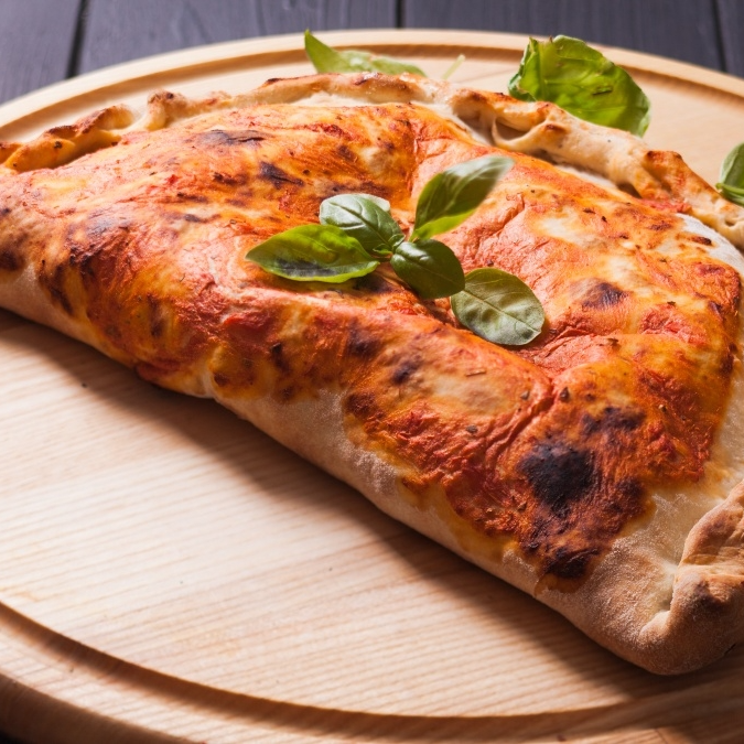 Carne de hamburguesa, envuelta con pasta de pizza , pepperoni por dentro y por fuera, queso amarillo y queso blanco.