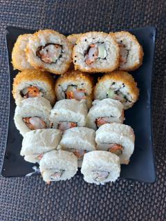 Philadelphia, pepino, zanahoria, camarón y por fuera philadelphia y frito
