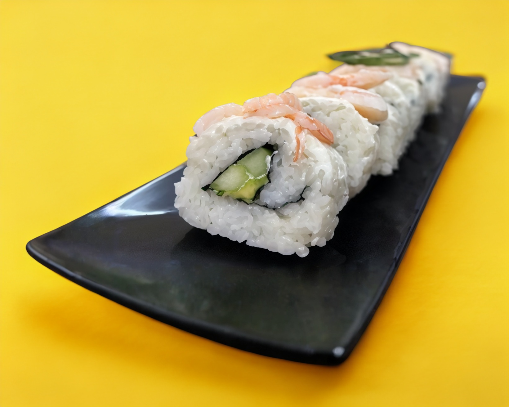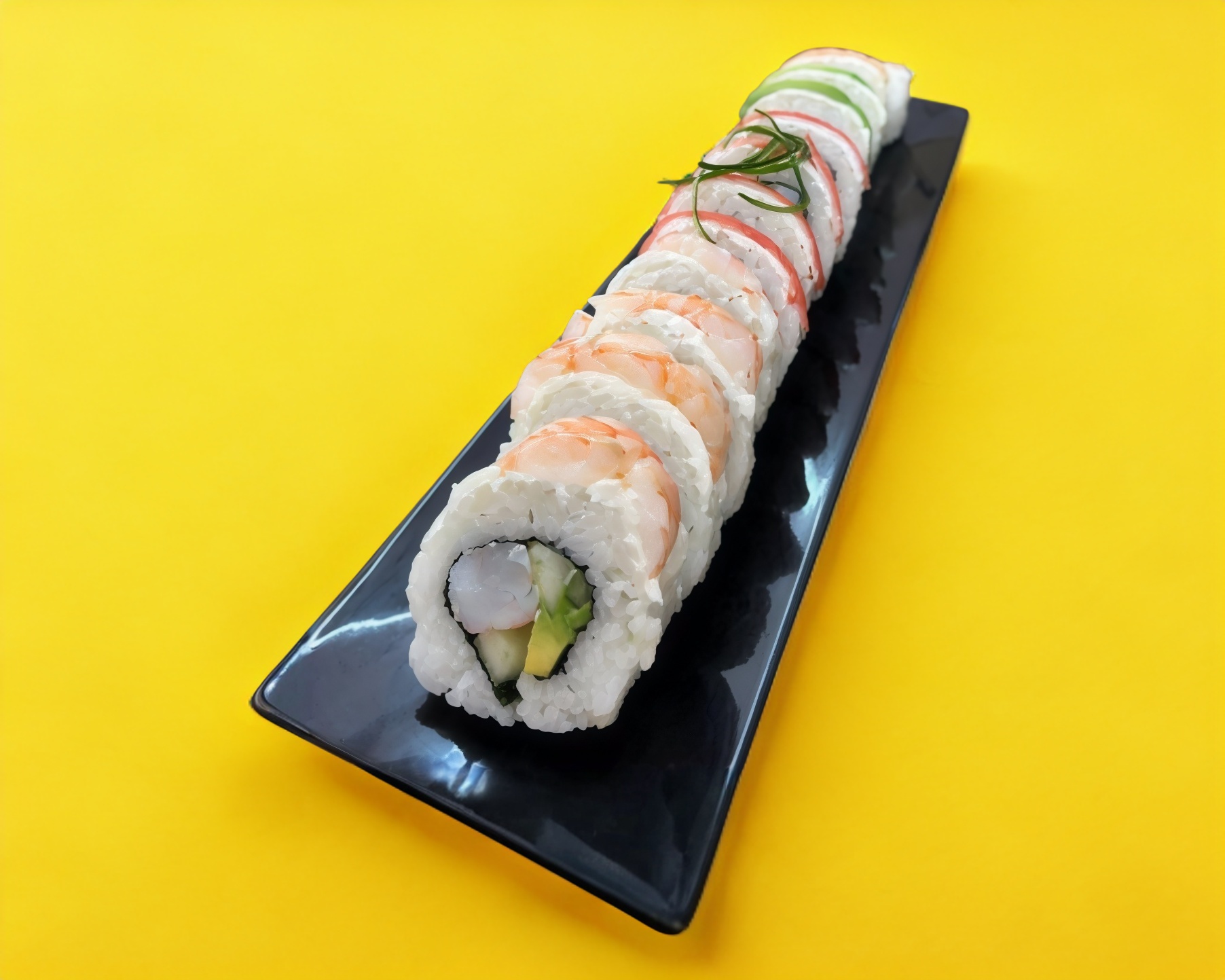 Philadelphia y camarón por fuera, por dentro aguacate y pepino