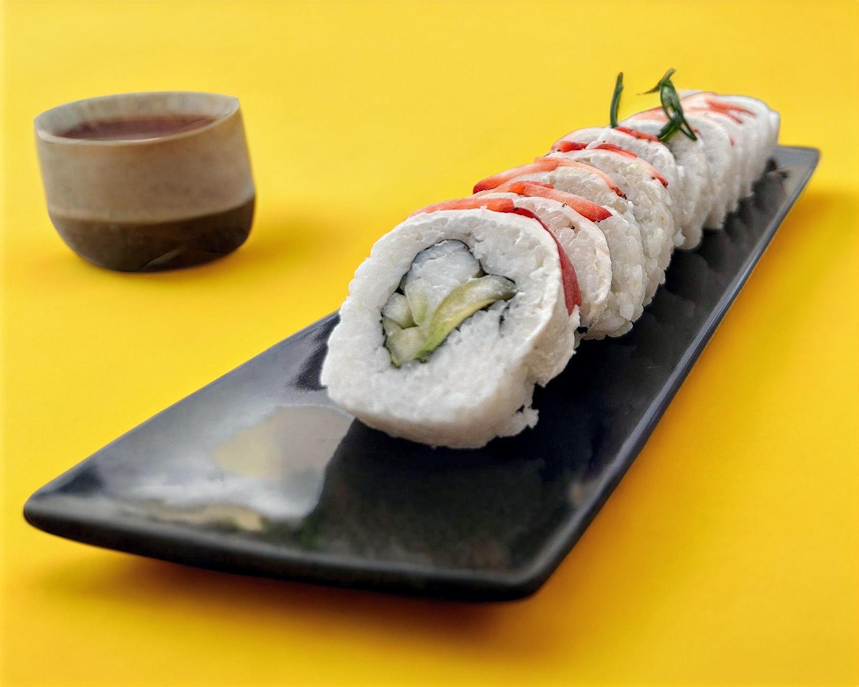 Vegetariano por dentro, por fuera philadelphia, aguacate, camarón, salmón y surimi
