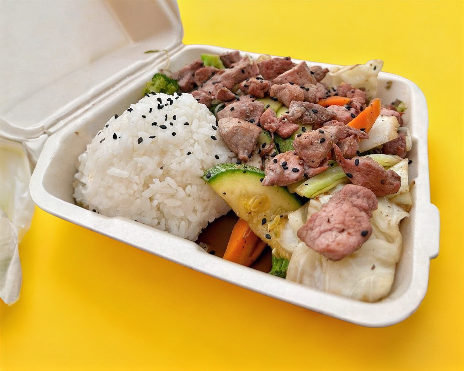 Deliciosas verduras a la plancha, acompañadas con gohan y proteína (opcional)