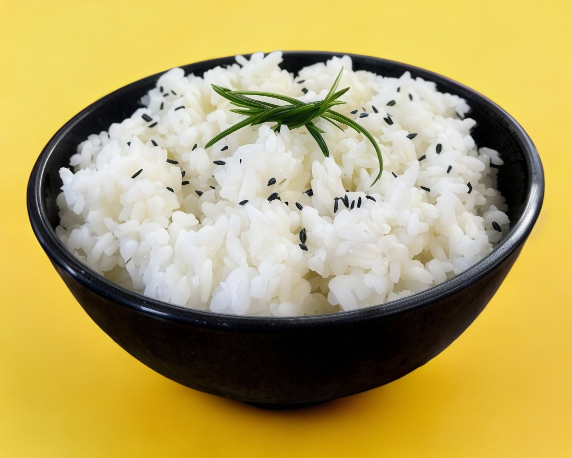 arroz blanco al vapor con un toque de vinagre de arroz.