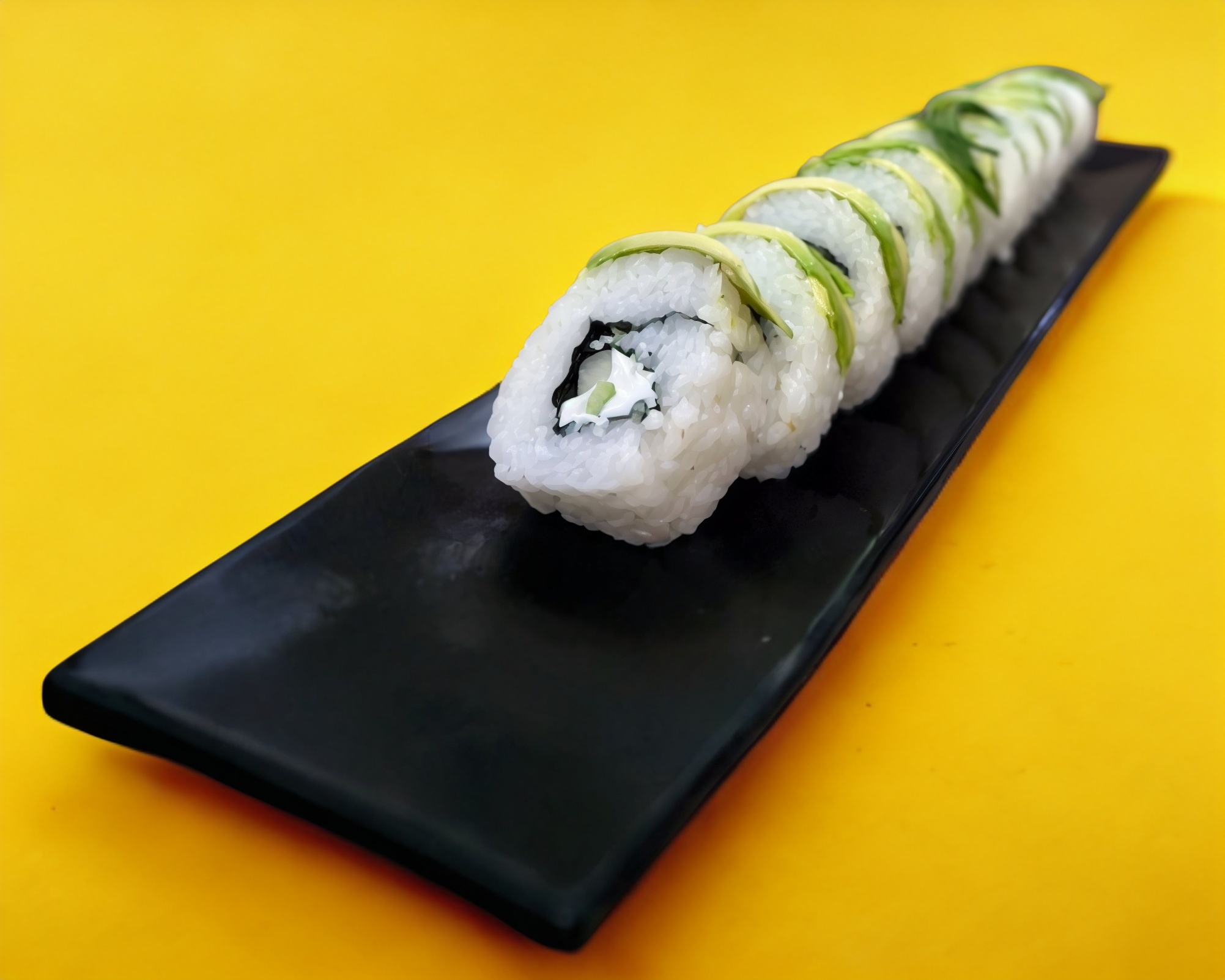 Aguacate por fuera, por dentro pepino, philadelphia y surimi