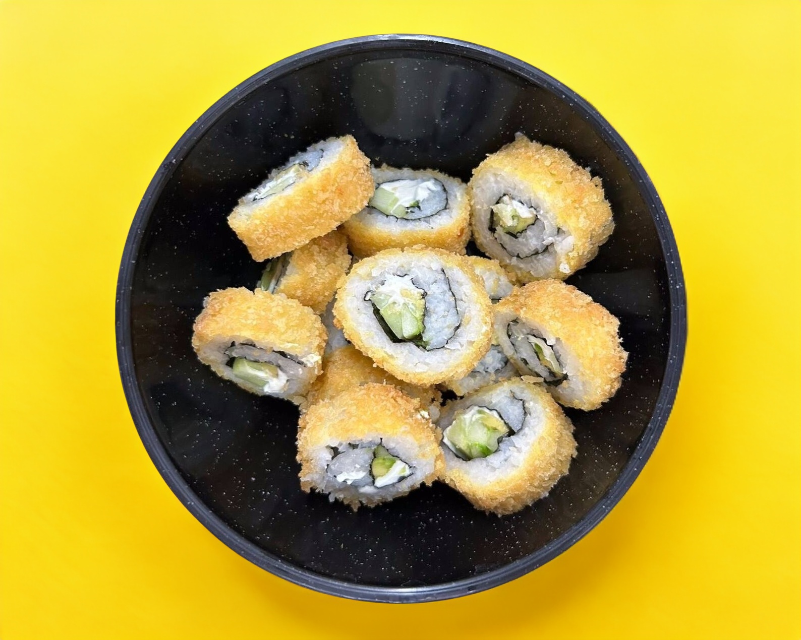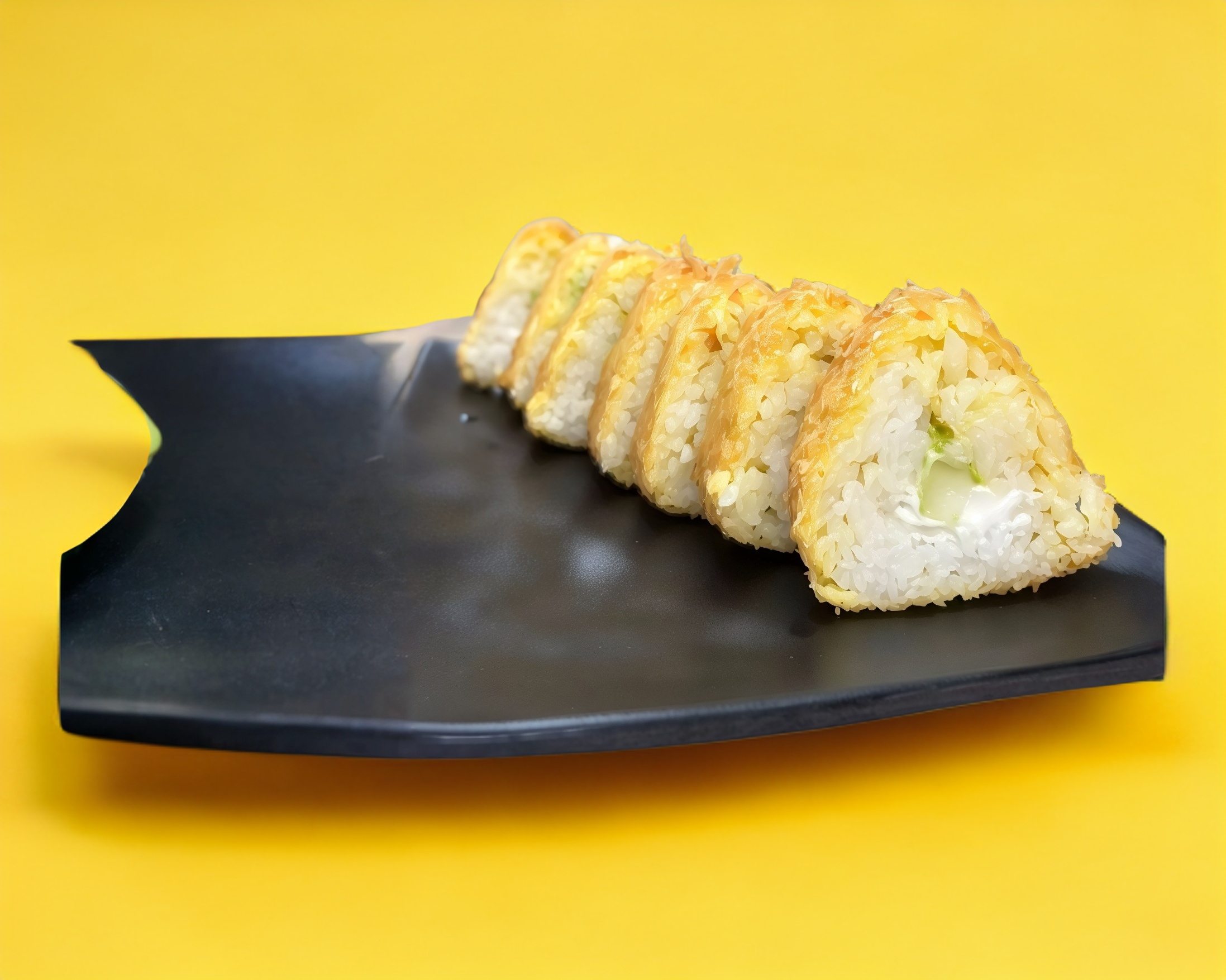 Empanizado por fuera, por dentro aguacate, pepino, philadelphia y surimi
