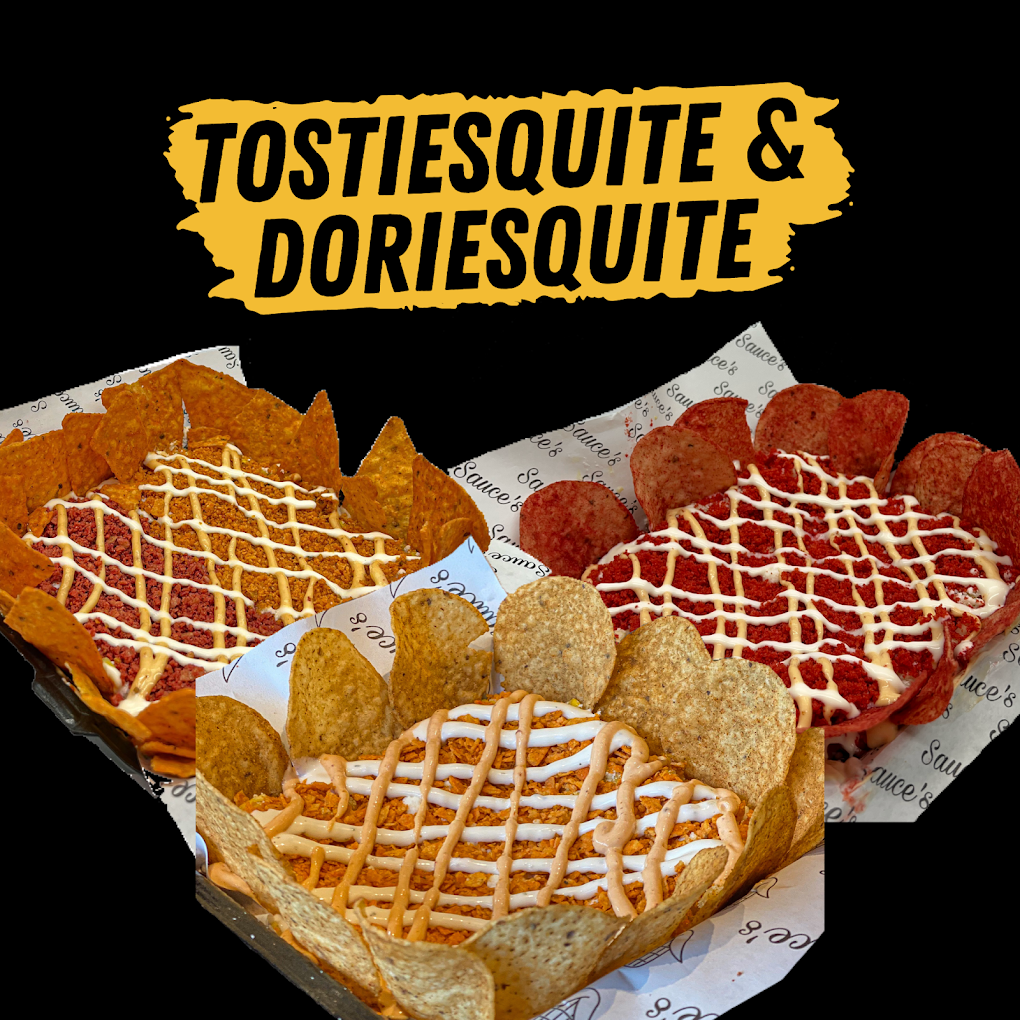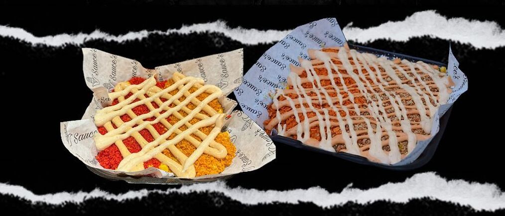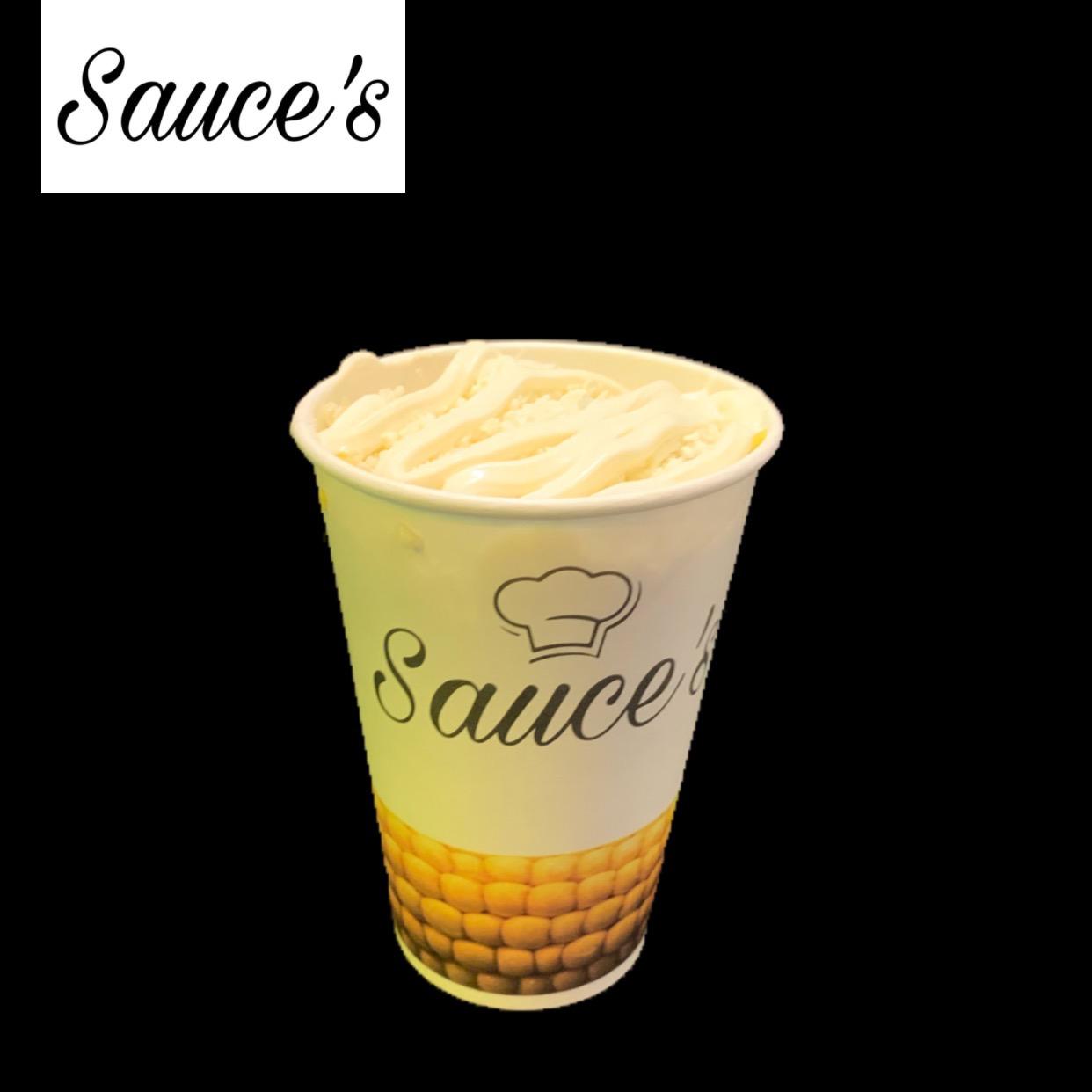 Papa cocida picada con elote desgrnado, acompñado con topping