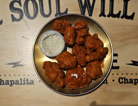 300 g De boneless de pollo empanizadas con salsa a elección y cup de aderezo ranch.