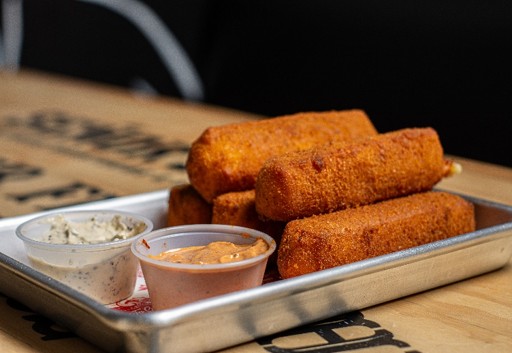Orden de 5 grandes dedos de queso empanizados. Acompañados de aderezos cilantro y chipotle.