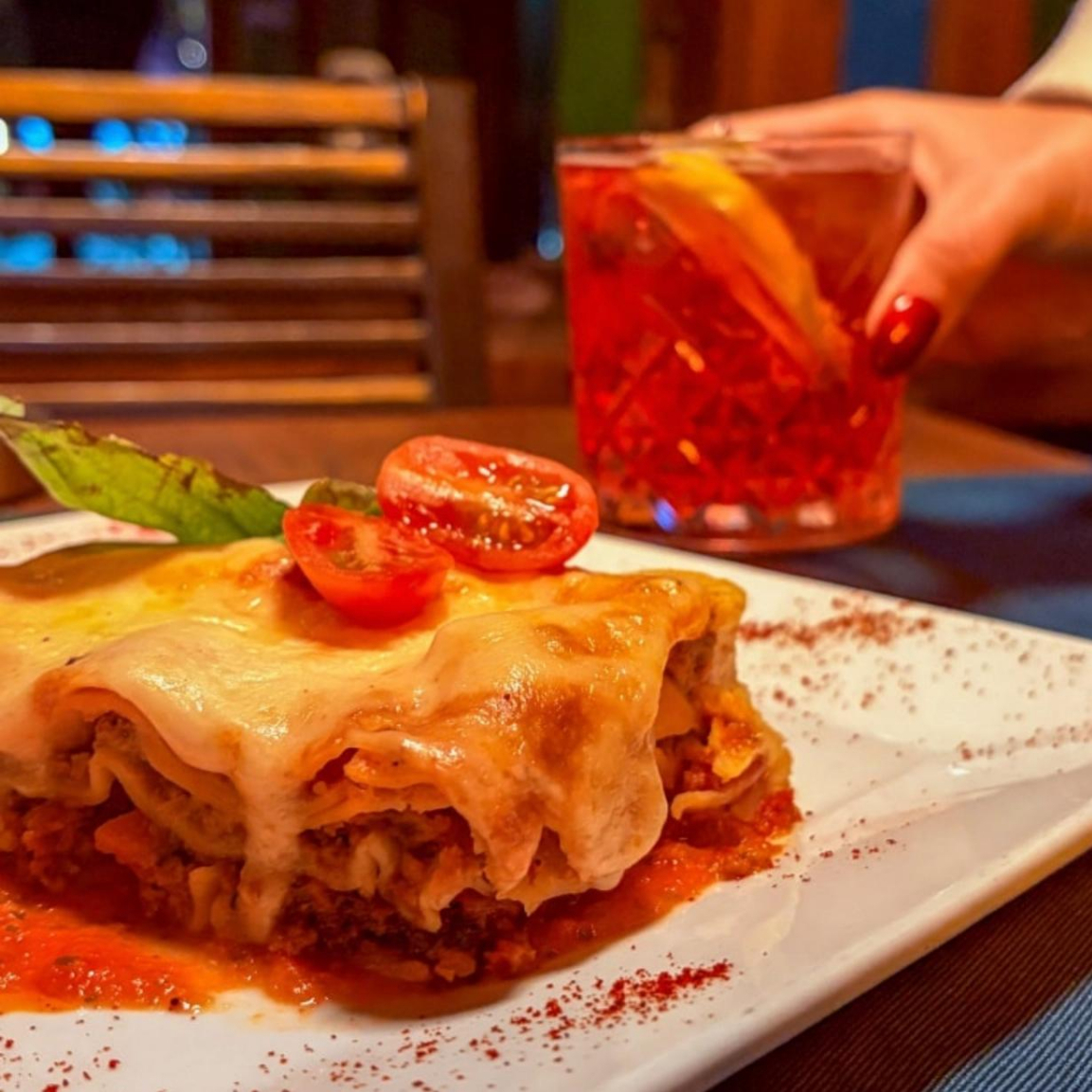 Pasta fresca horneada con tradicional salsa ragú, bechamel y queso parmesano gratinado.