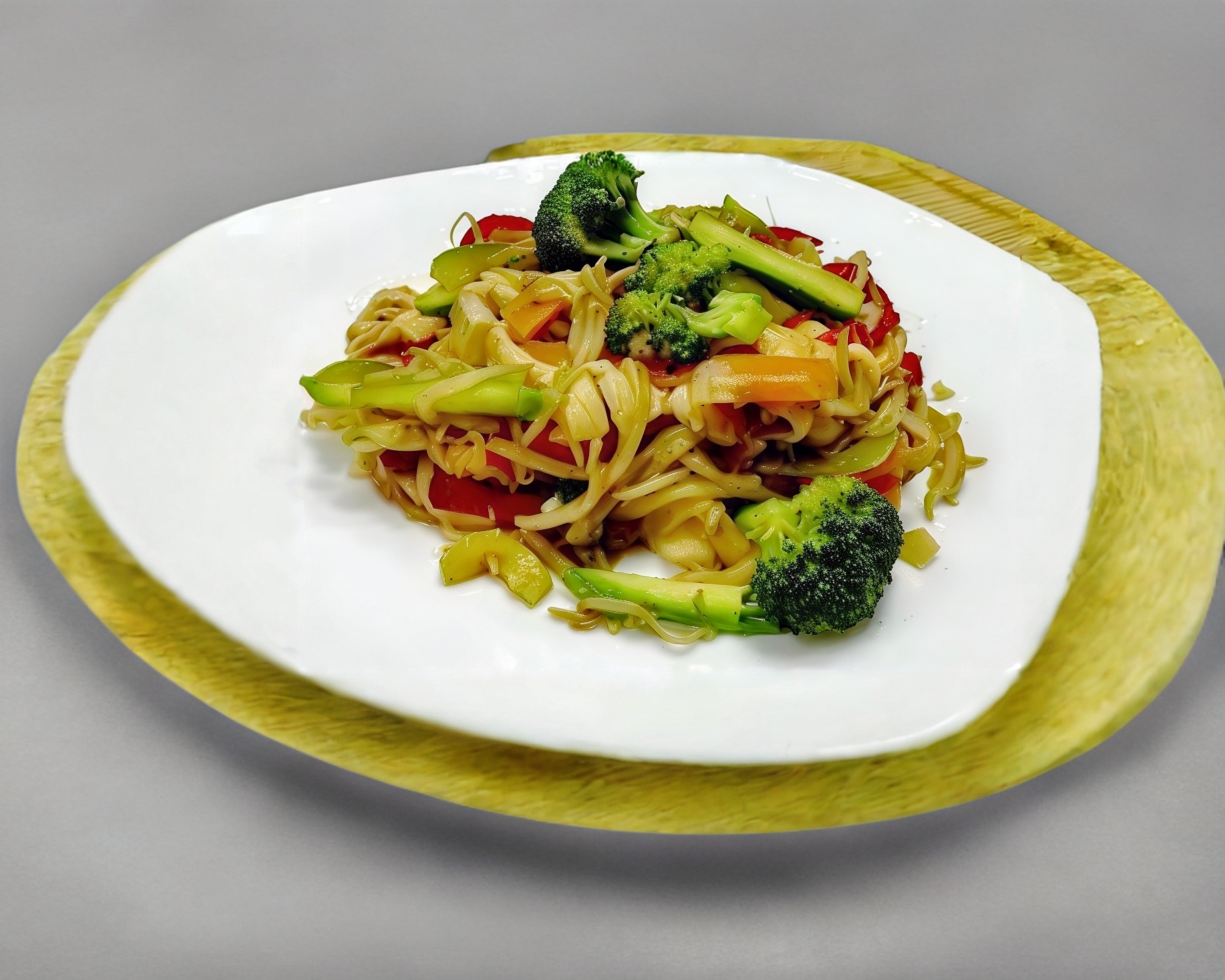 Verduras salteadas a la plancha, arroz frito, philadelphia y aguacate.