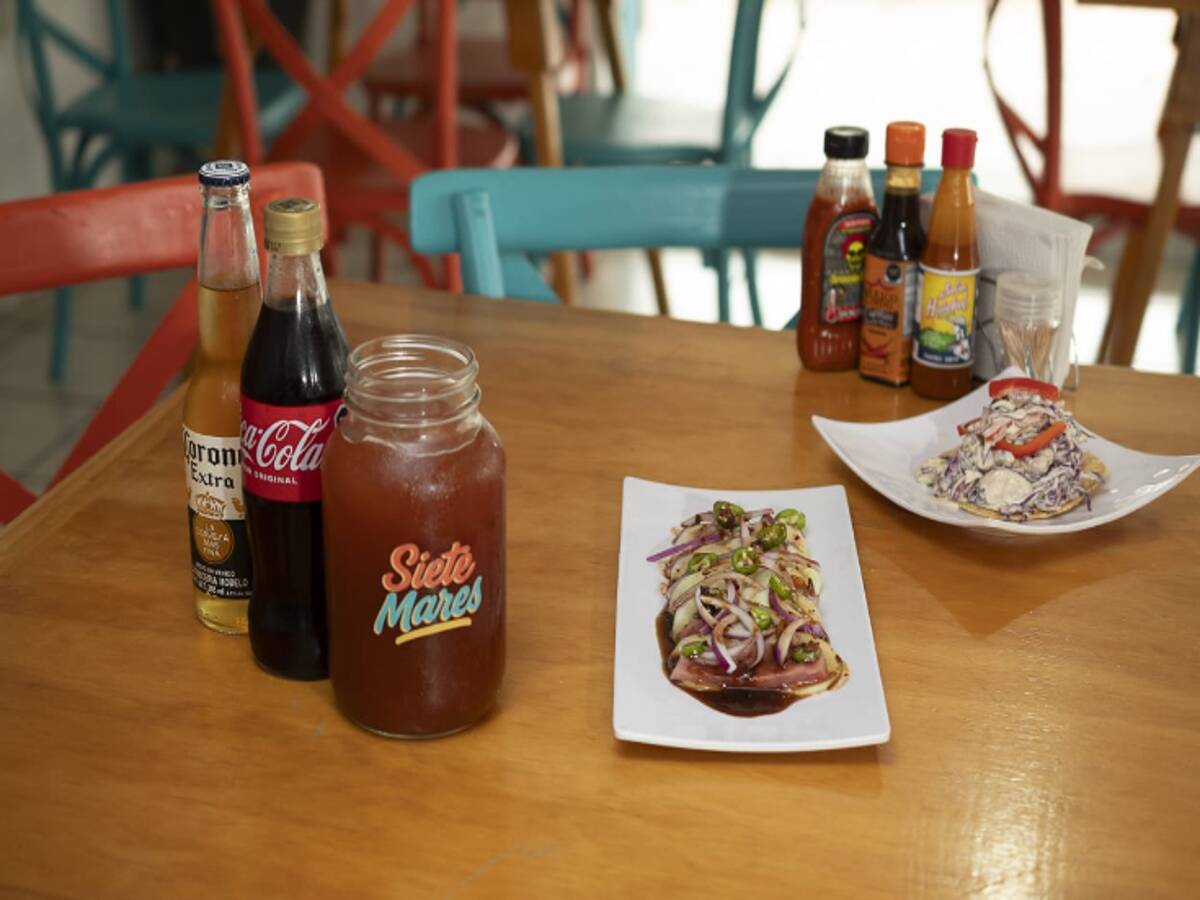 Ceviche de pescado, camarón, pulpo, salsas negras y chiltepin