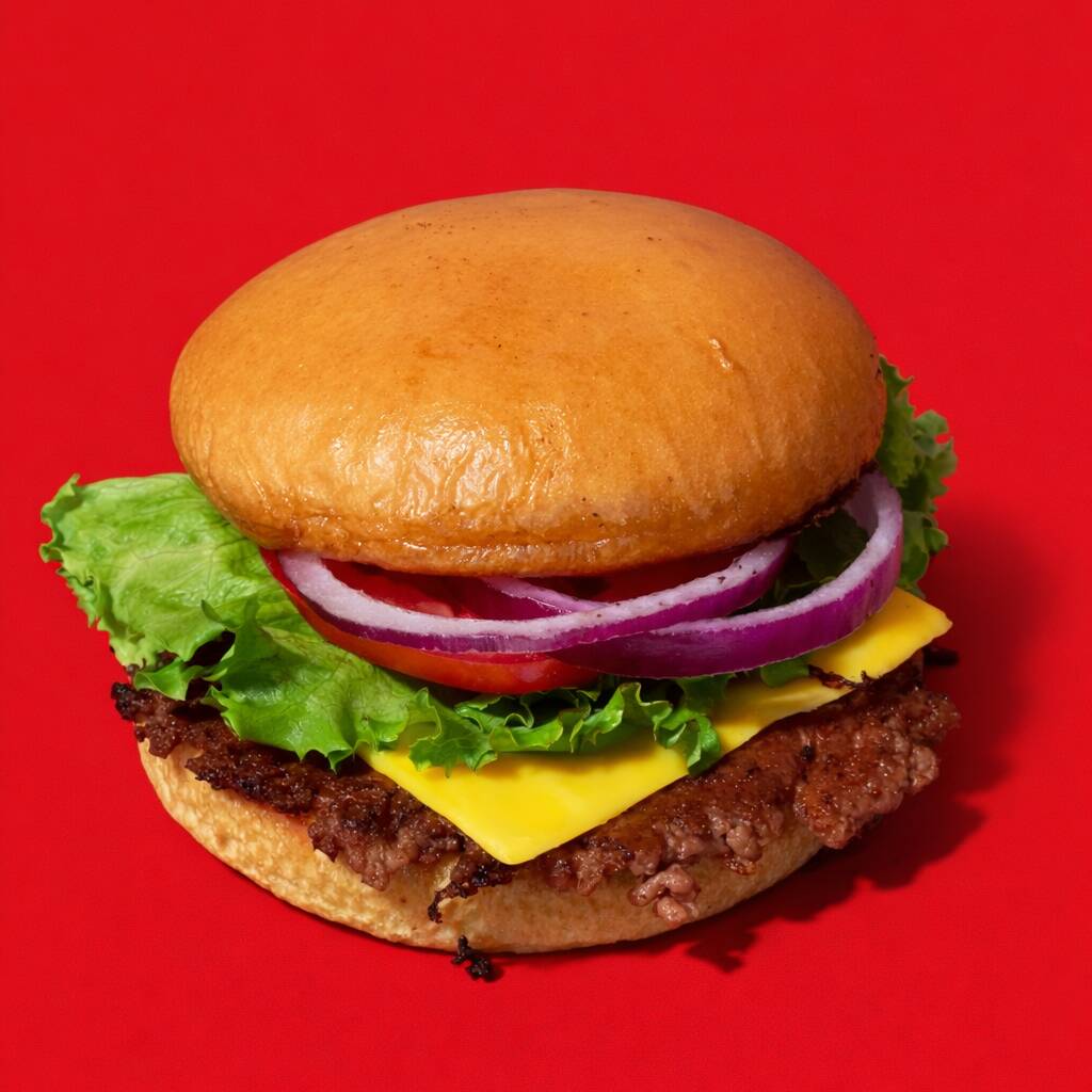 Pan de mantequilla, carne smash, queso amarillo, vegetales frescos y aderezo de la casa.