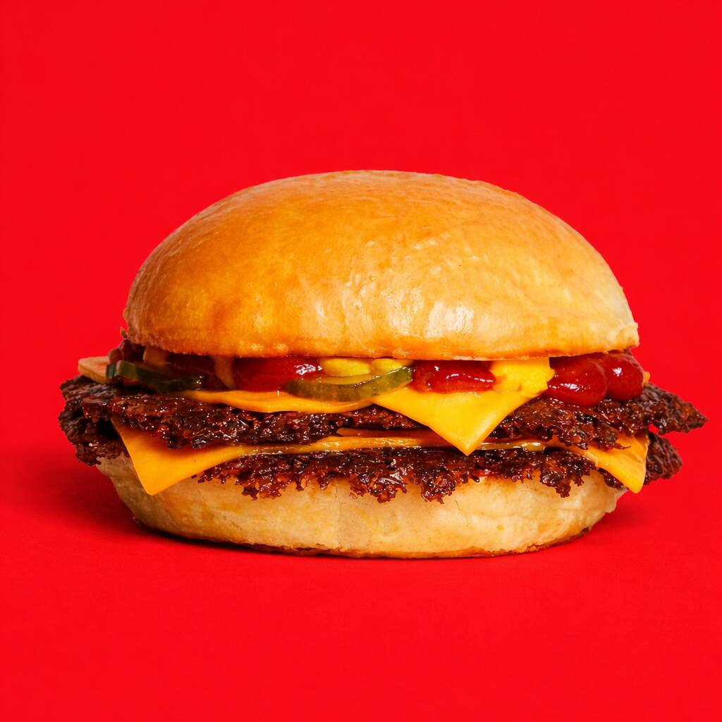 Pan de mantequilla, doble carne smash, doble queso amarillo y aderezo de la casa.