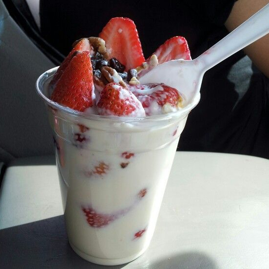 fruta a tu eleccion bañada con rica crema especial de la casa y 3 cereales