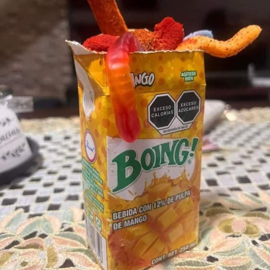 boing congelado de 500ml preparado con chamoy especial de la casa, chile miguelito y gomitas