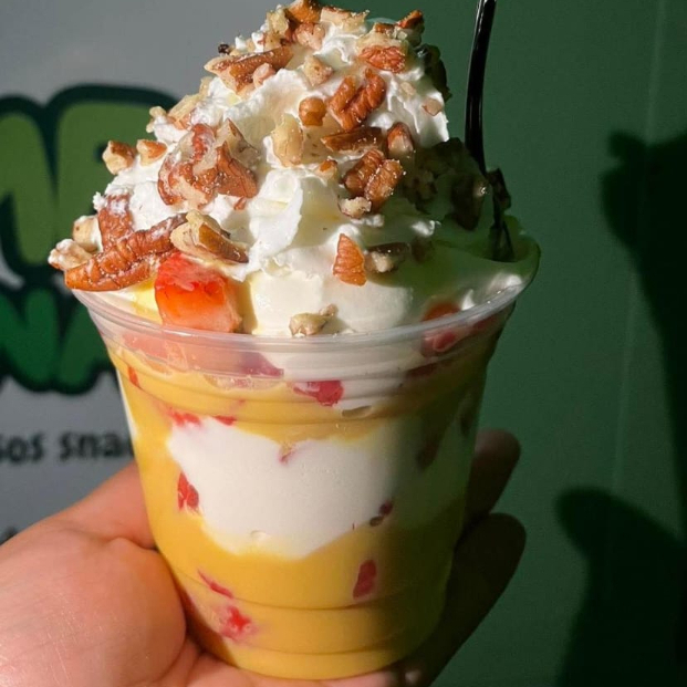 mezcla dulce bañada con 1 base a elegir 1 fruta y 1 cereal