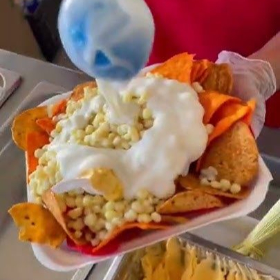 bolsa de tostitos preparados con elote y crema queso mayonesa y queso amarillo