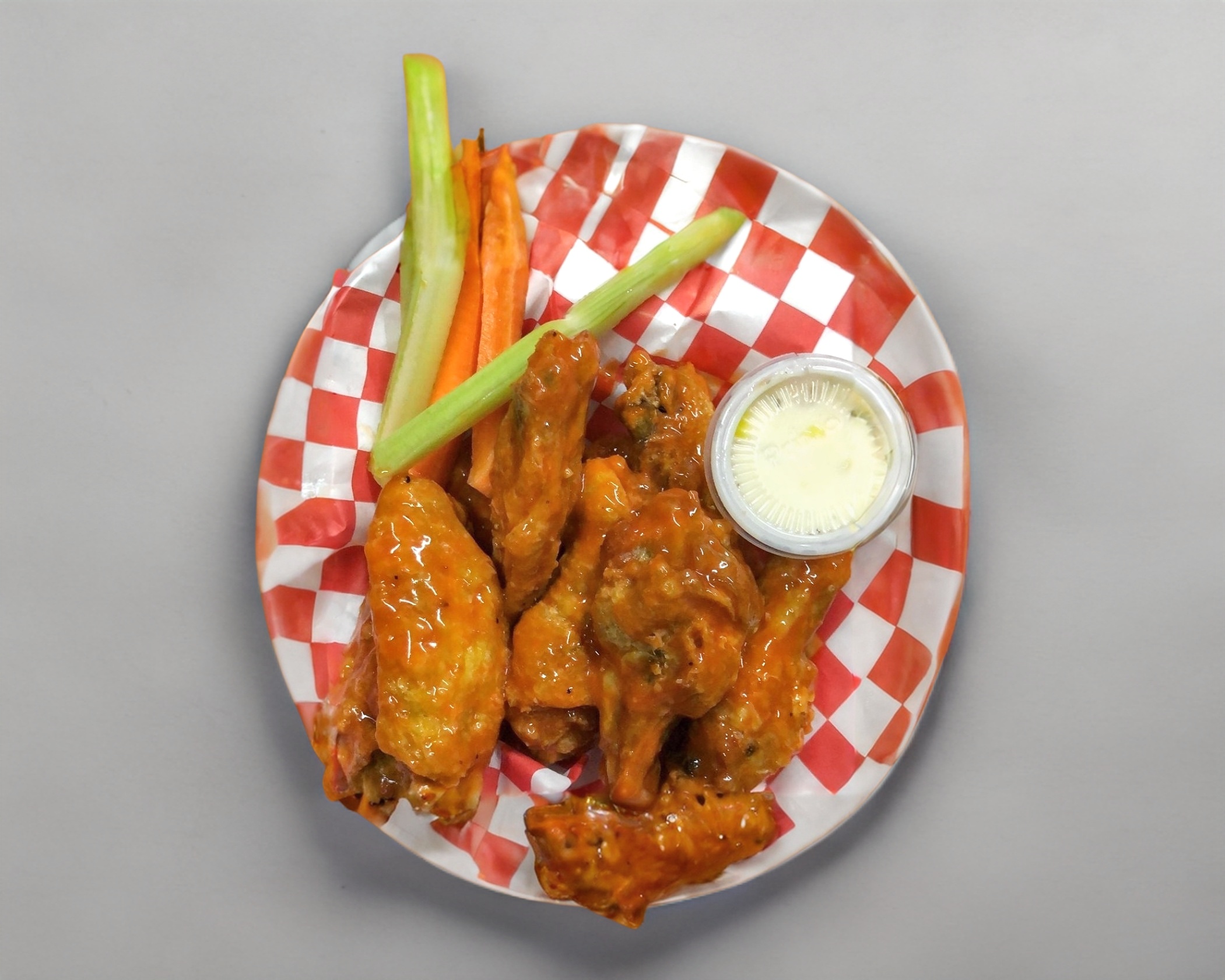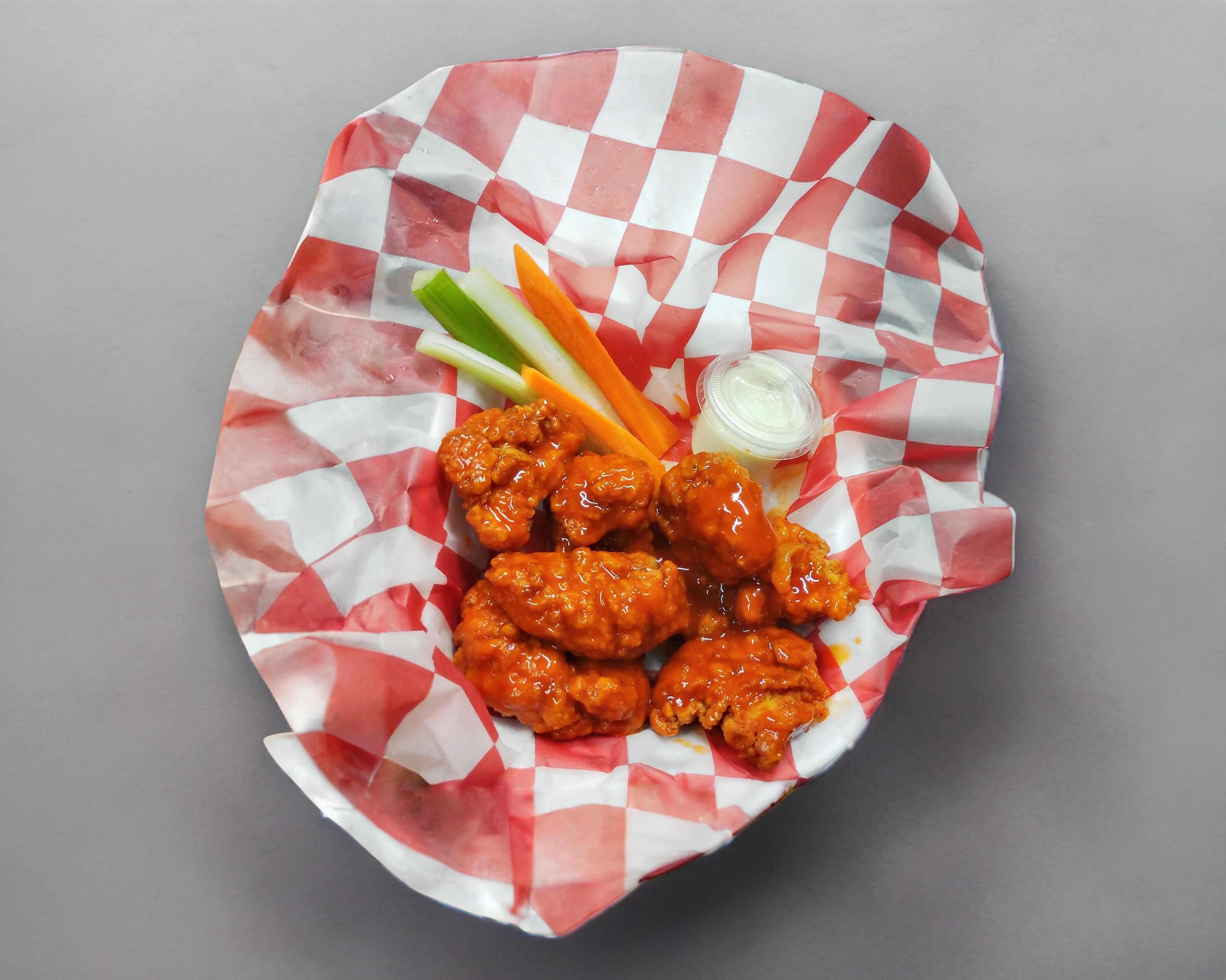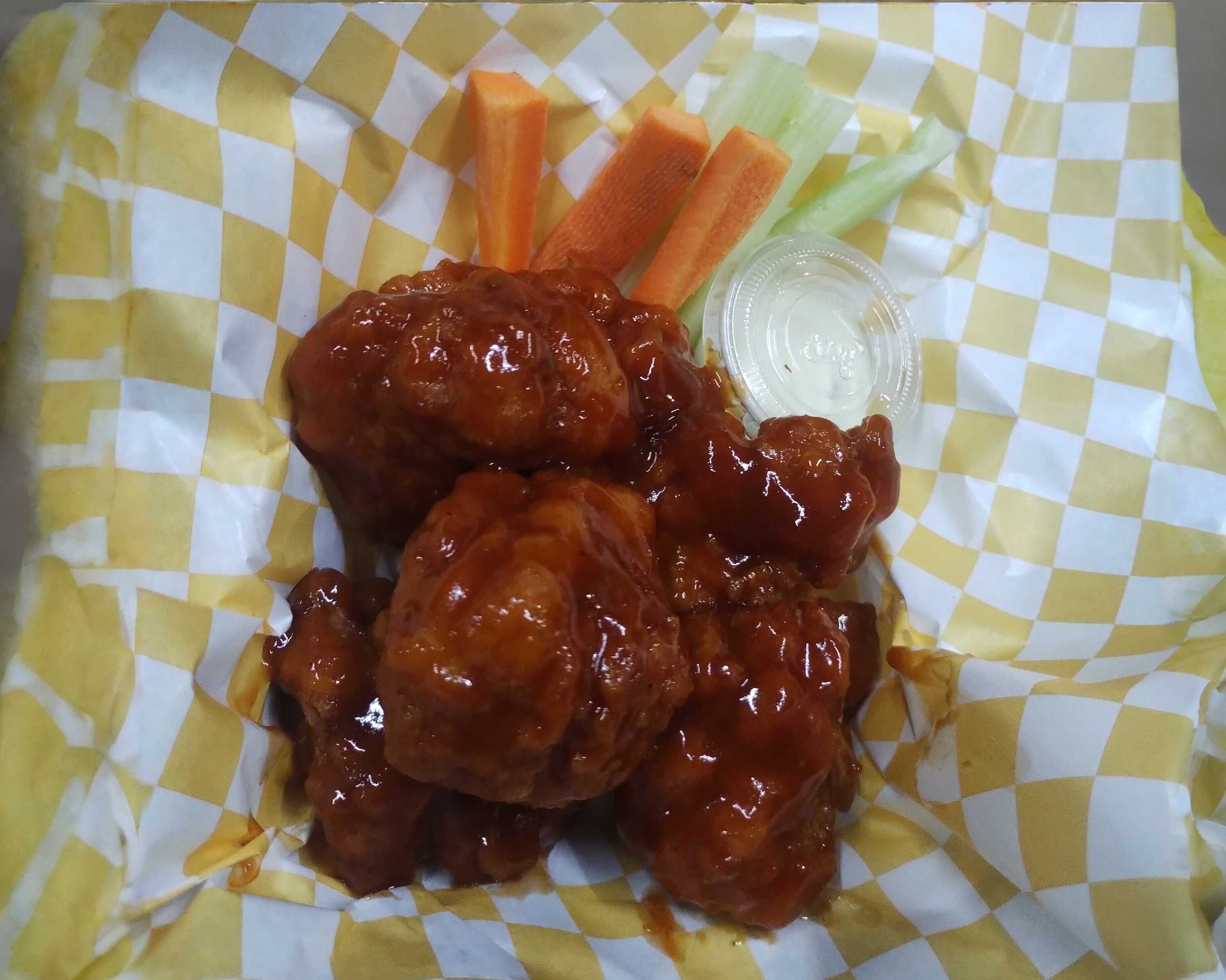 Orden de boneles alitas sin hueso con vegetales y ranch