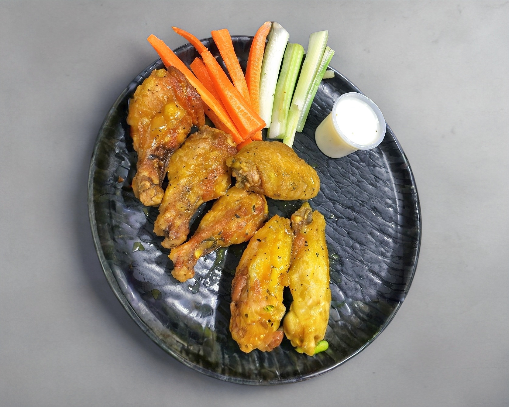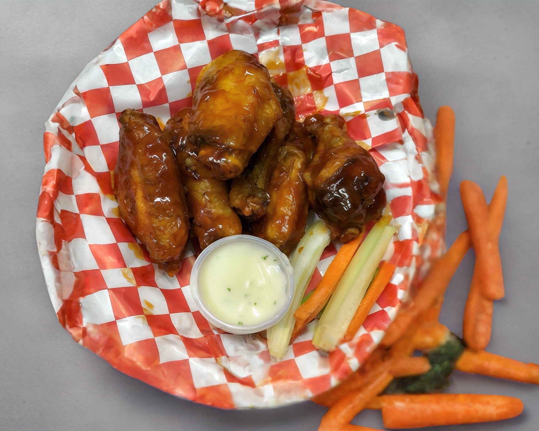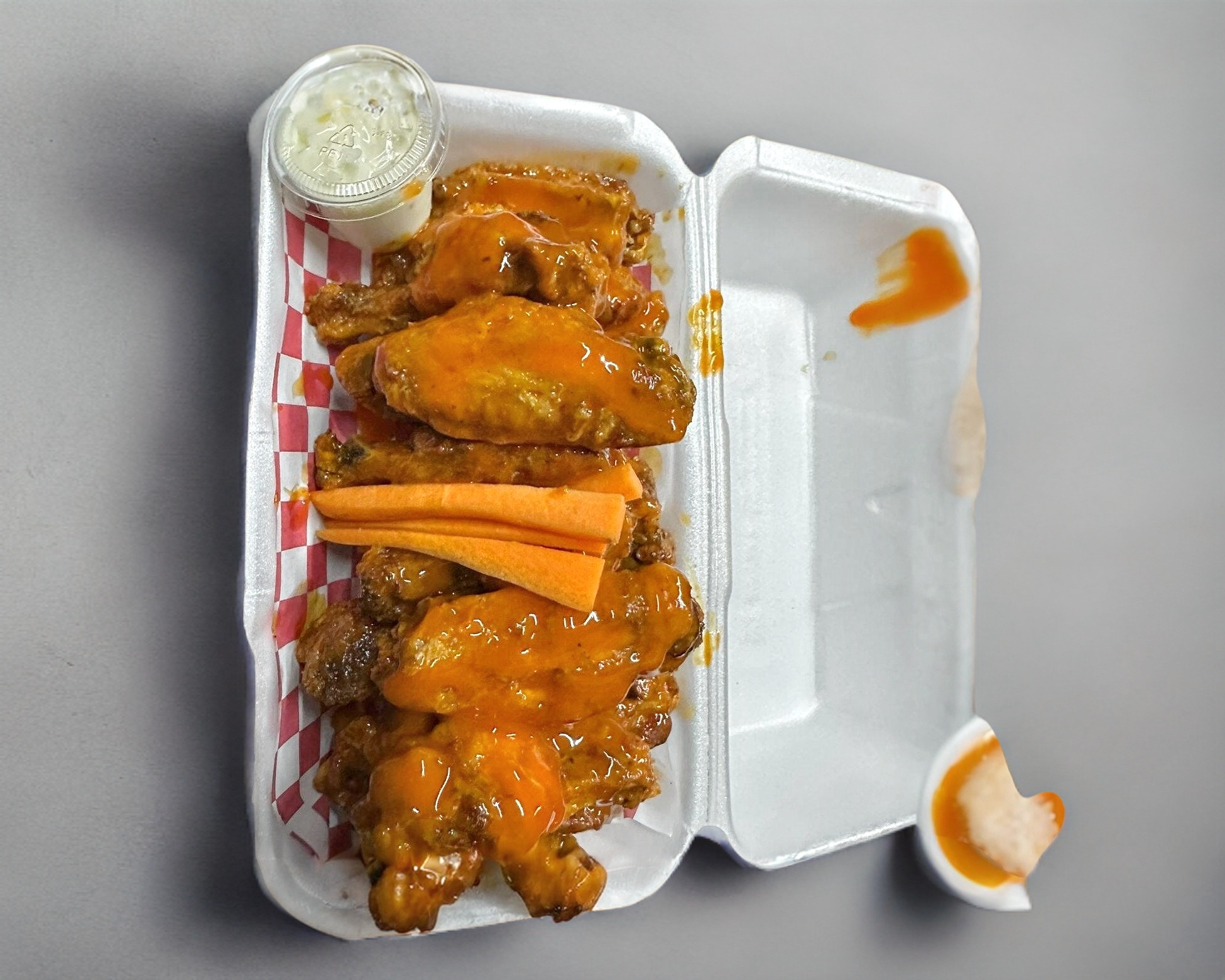 Orden de boneles alitas sin hueso con vegetales y ranch