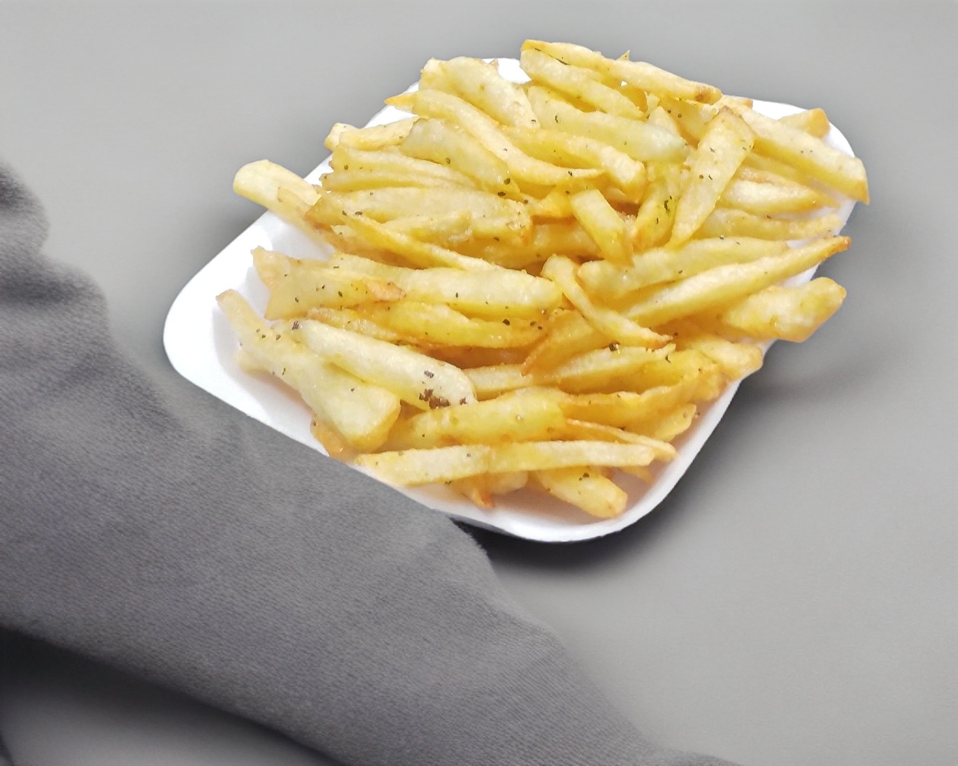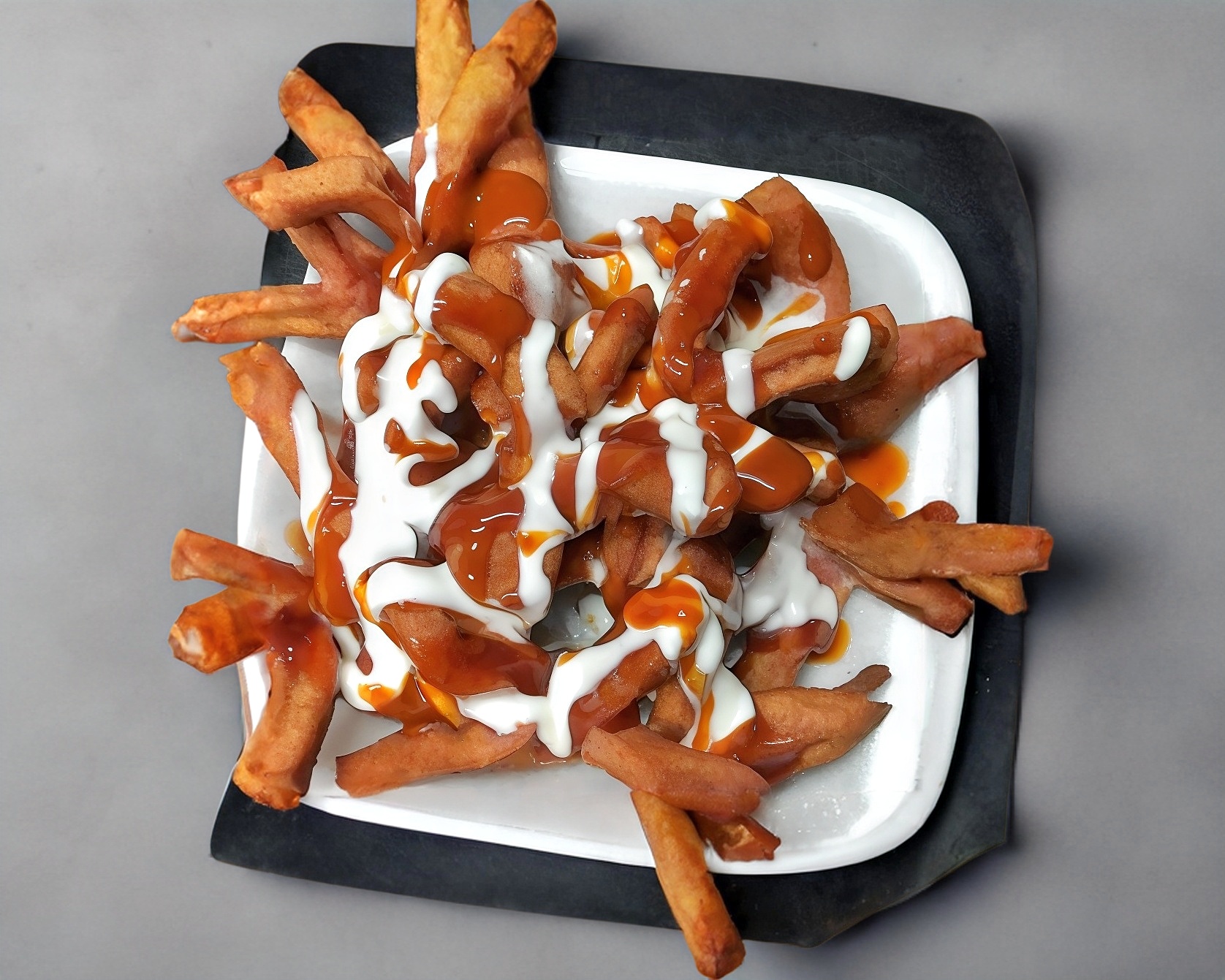 Papas fritas en aceite, lleva bolsitas aparte de captsu, crema, chile, mostaza y limón