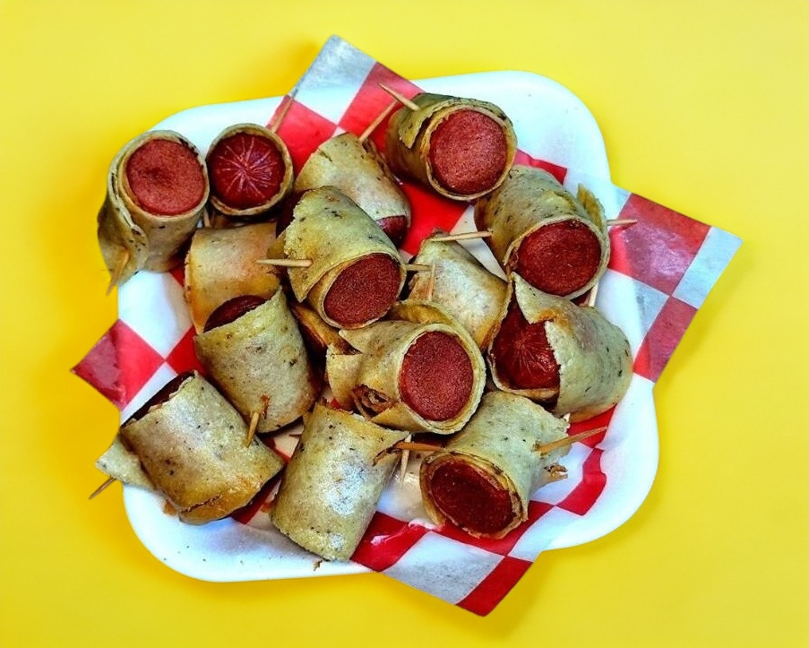 Mix de Salchipulpos, Salchitacos y Papas a la Francesa. Incluyen Crema, Catsup, Mostaza y Chile
