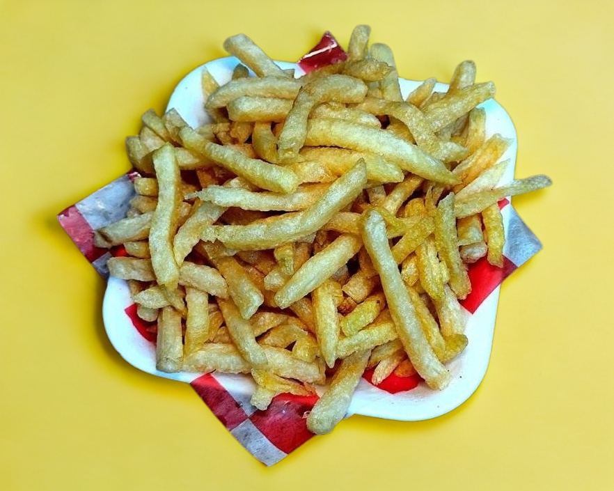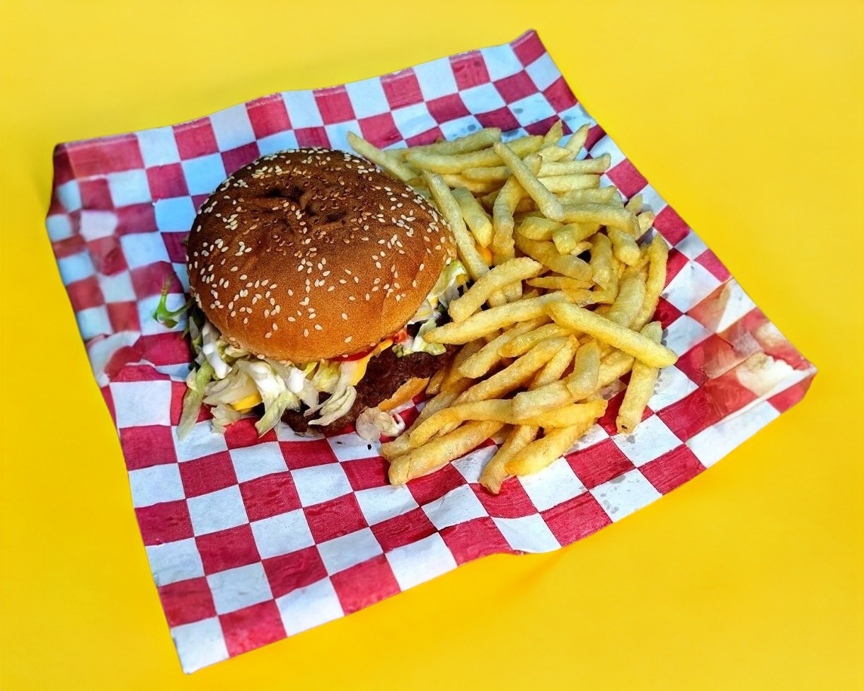 Hamburguesa de Res (Lechuga, Jitomate y Cebolla) con Papas a la Francesa