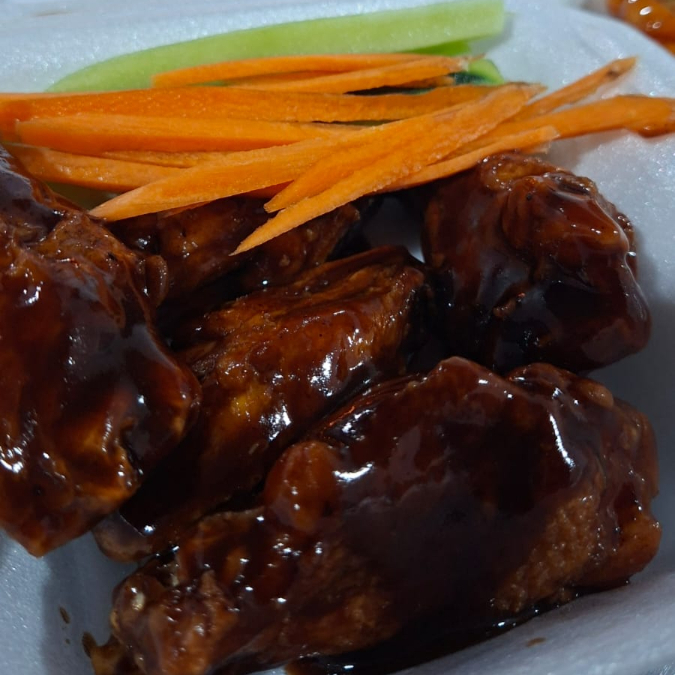 6 piezas de alitas con deliciosa salsa BBQ
