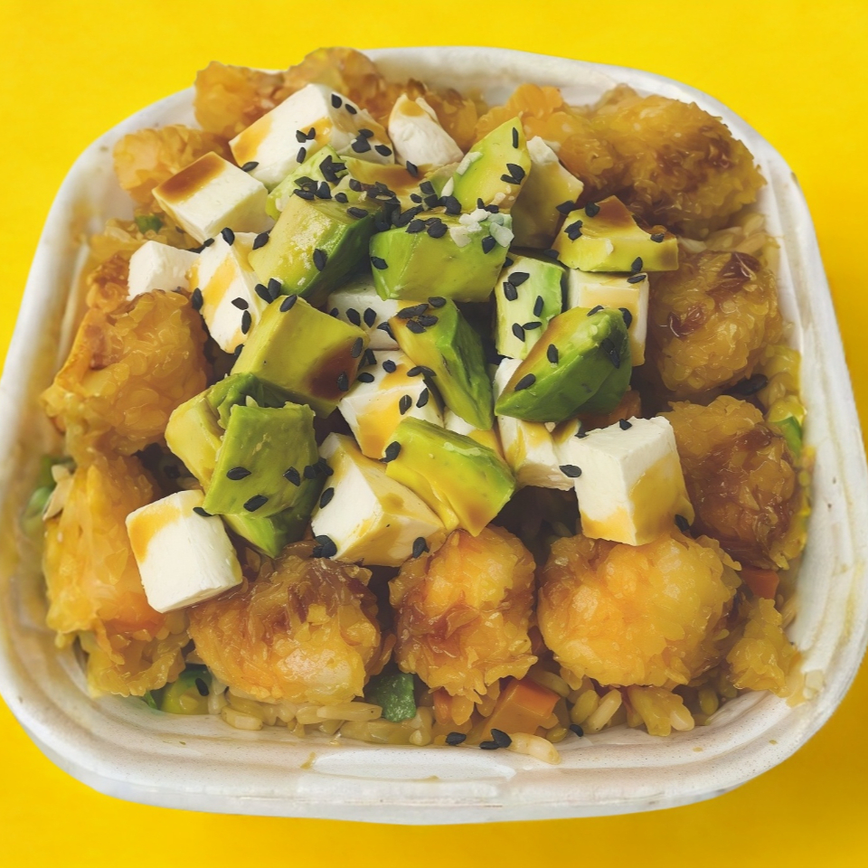 Arroz frito con topping de aguacate,philadelphia y proteina
