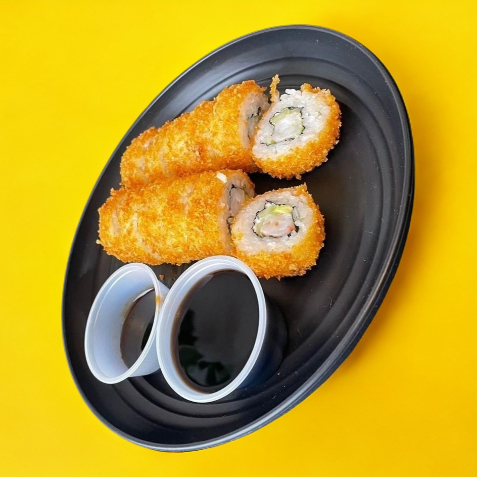 Rollo empanizado por fuera. Por dentro: vegetales,philadelphia y proteina.