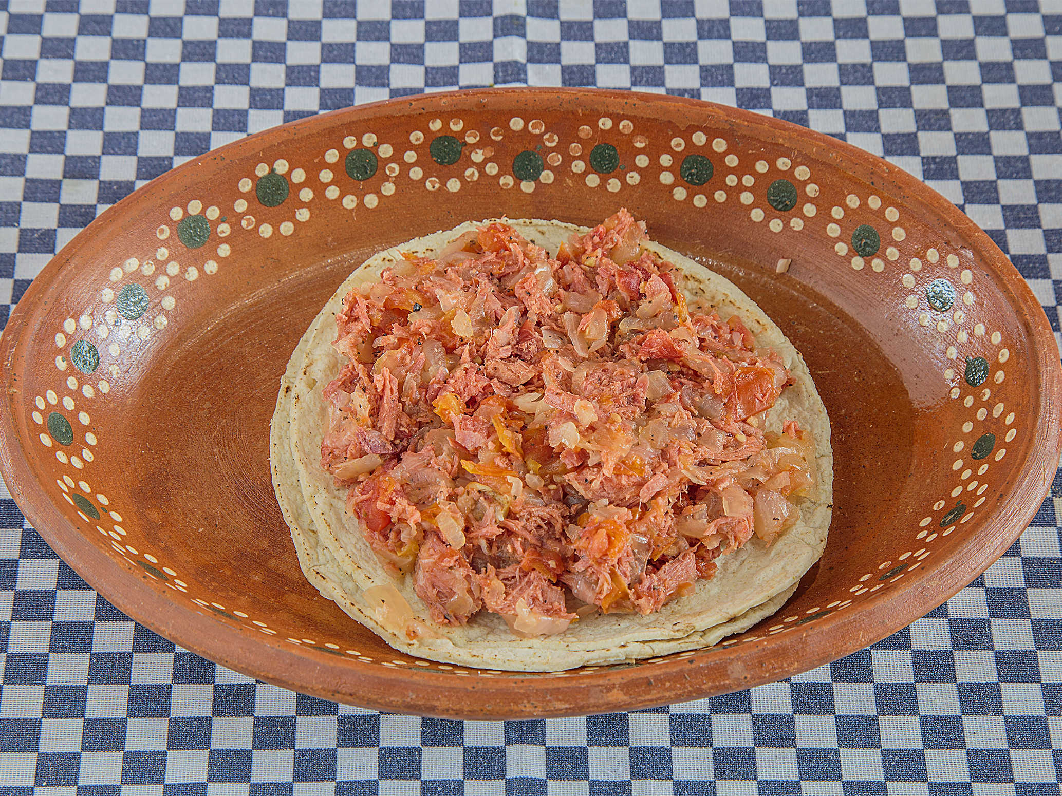 Delicioso marlín, guisado con cebolla y jitomate.