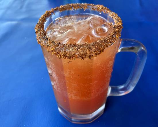 Chiltepin, clamato, salsas negras, pepino, cebolla, morada y aguacate con limón, sal y pimienta.