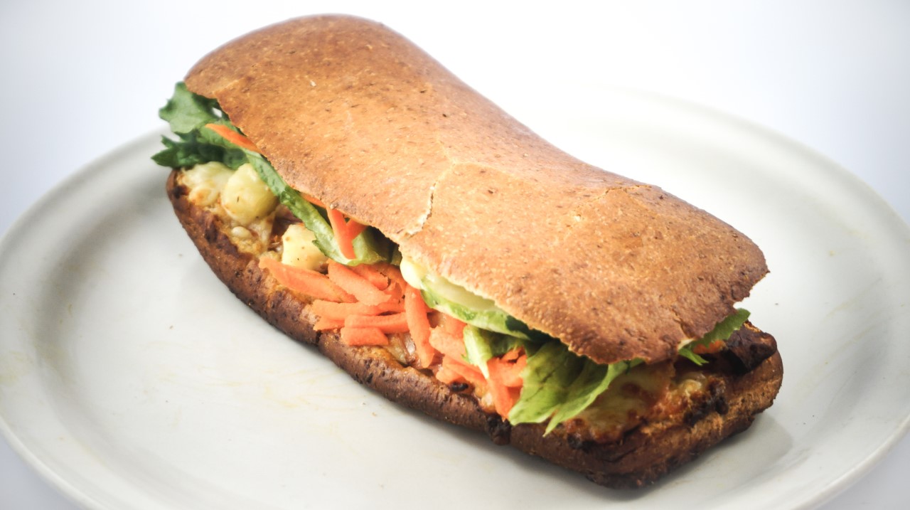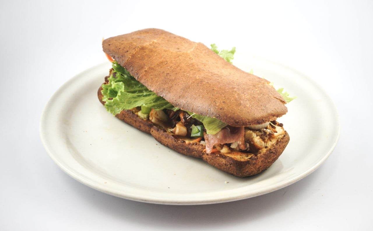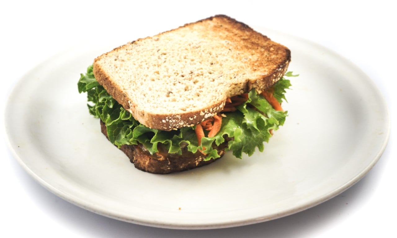 Una porción de proteína (100grs), cinco ingredientes de barra, más lechuga base.
