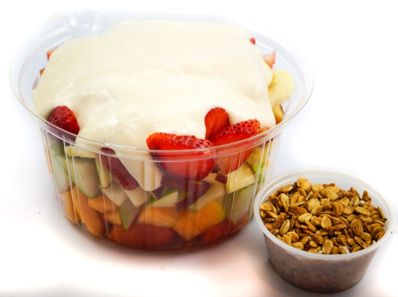 3 porciónes de proteína (150grs), cinco ingredientes de barra más lechuga base.