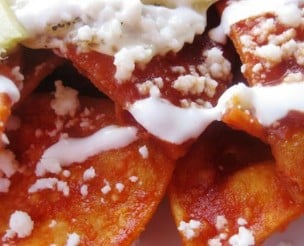 Carne al pastor, queso manchego, crema, aderezo chipotle, tocino y perejil.