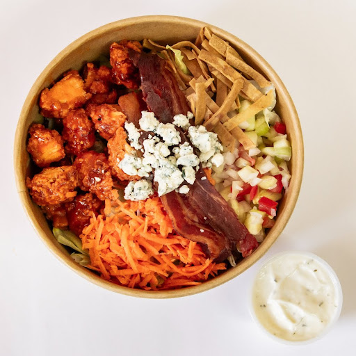 Disfruta nuestra ensalada de lechuga fresca con pollo en salsa buffalo, zanahoria, pico de gallo, tiras crujientes de tortilla, tocino y Blue Cheese Crumble. ¡Una combinación explosiva de sabores!