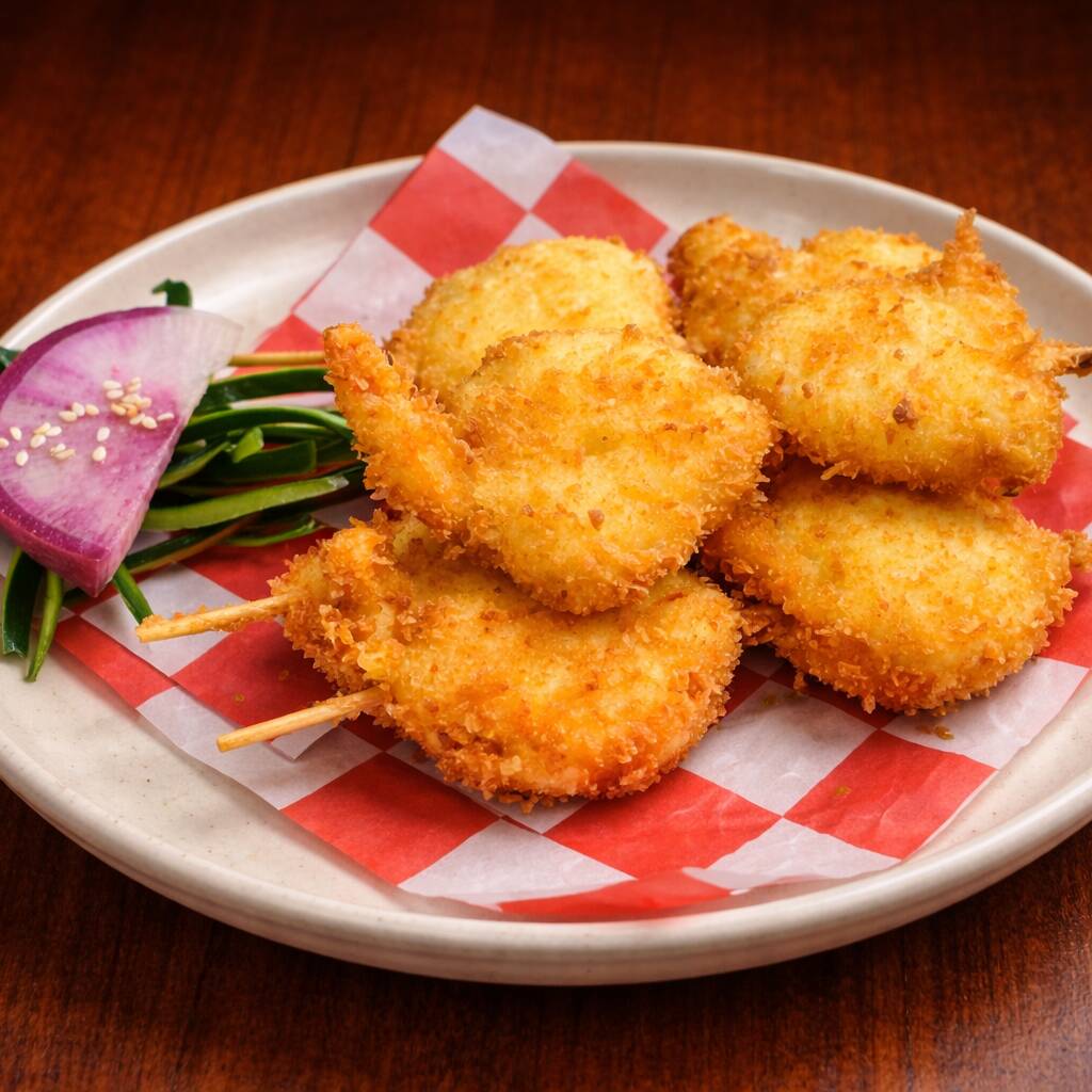 Brochetas empanizadas de camaron con philadelphia