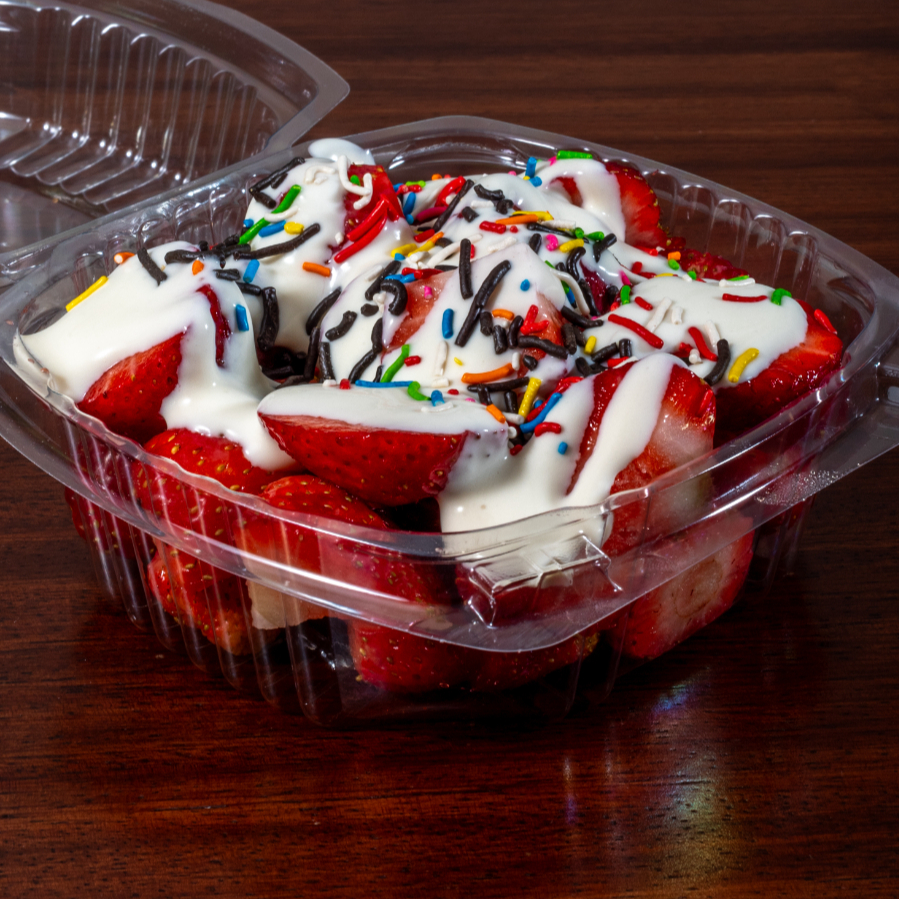 Fresas picadas bañadas con nuestra crema de bionico.