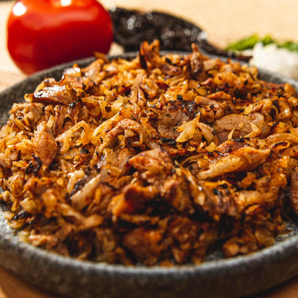 Orden con 130gr de birria acompañada de 152gr de tortillas y 200ml de consomé