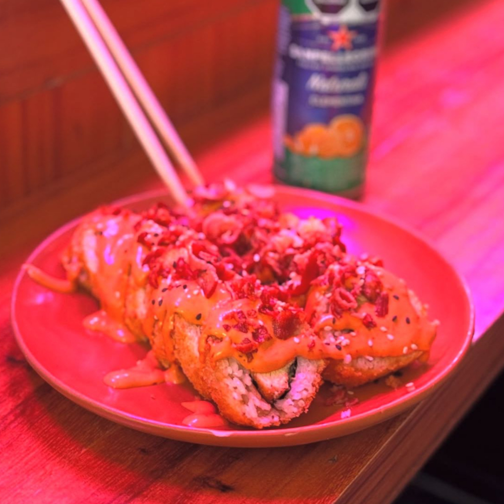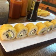 Rollo empanizado, crujiente por fuera y por dentro carne de res, camarón , aguacate , philadelphia y alga