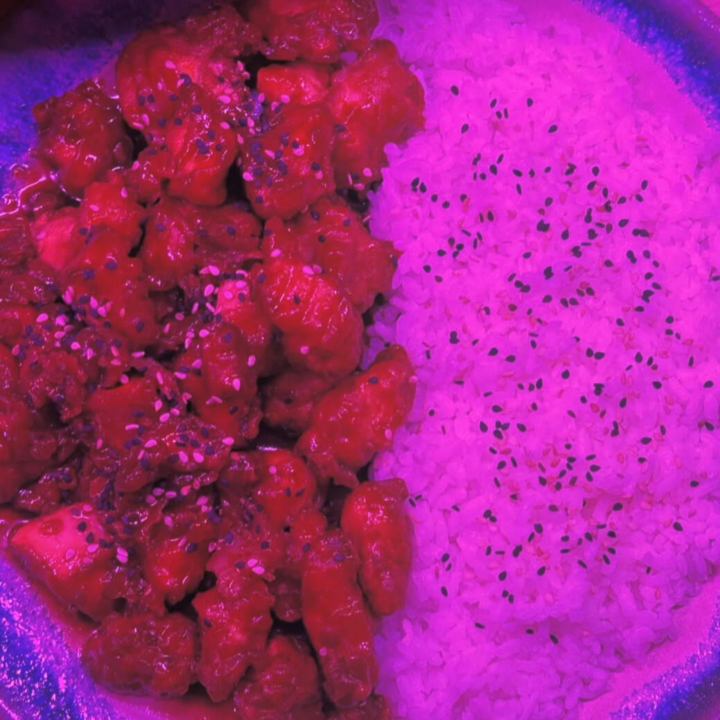 Arroz blanco al vapor, acompañado de brocoli al vapor, ensalada tampico, aguacate , philadelphia y camarones empanizados