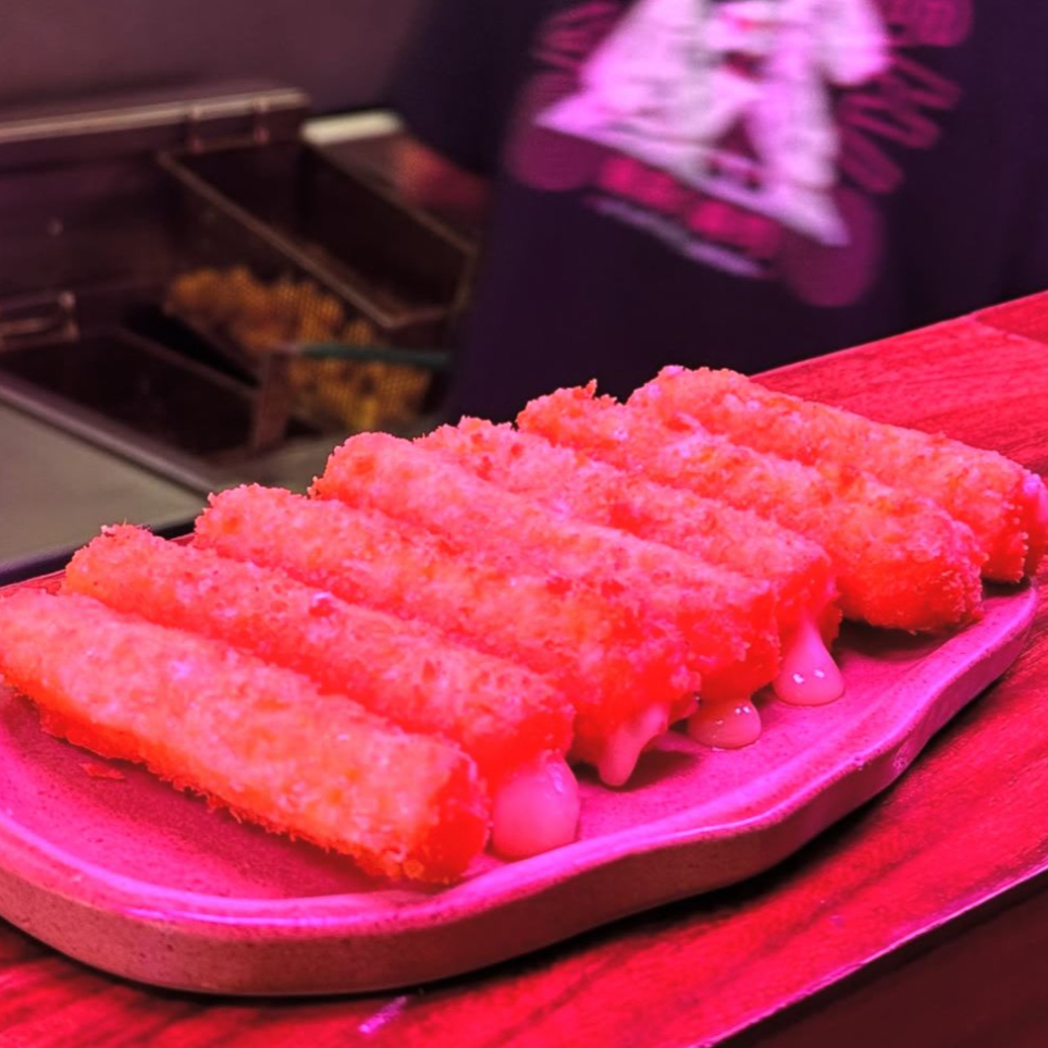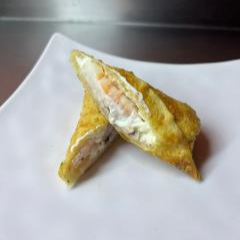 Rollos empanizado (.700grs aprox) por dentro, pollo, re, camarón, dedos de queso gratinados , aguacate, pepino y philadelphia
