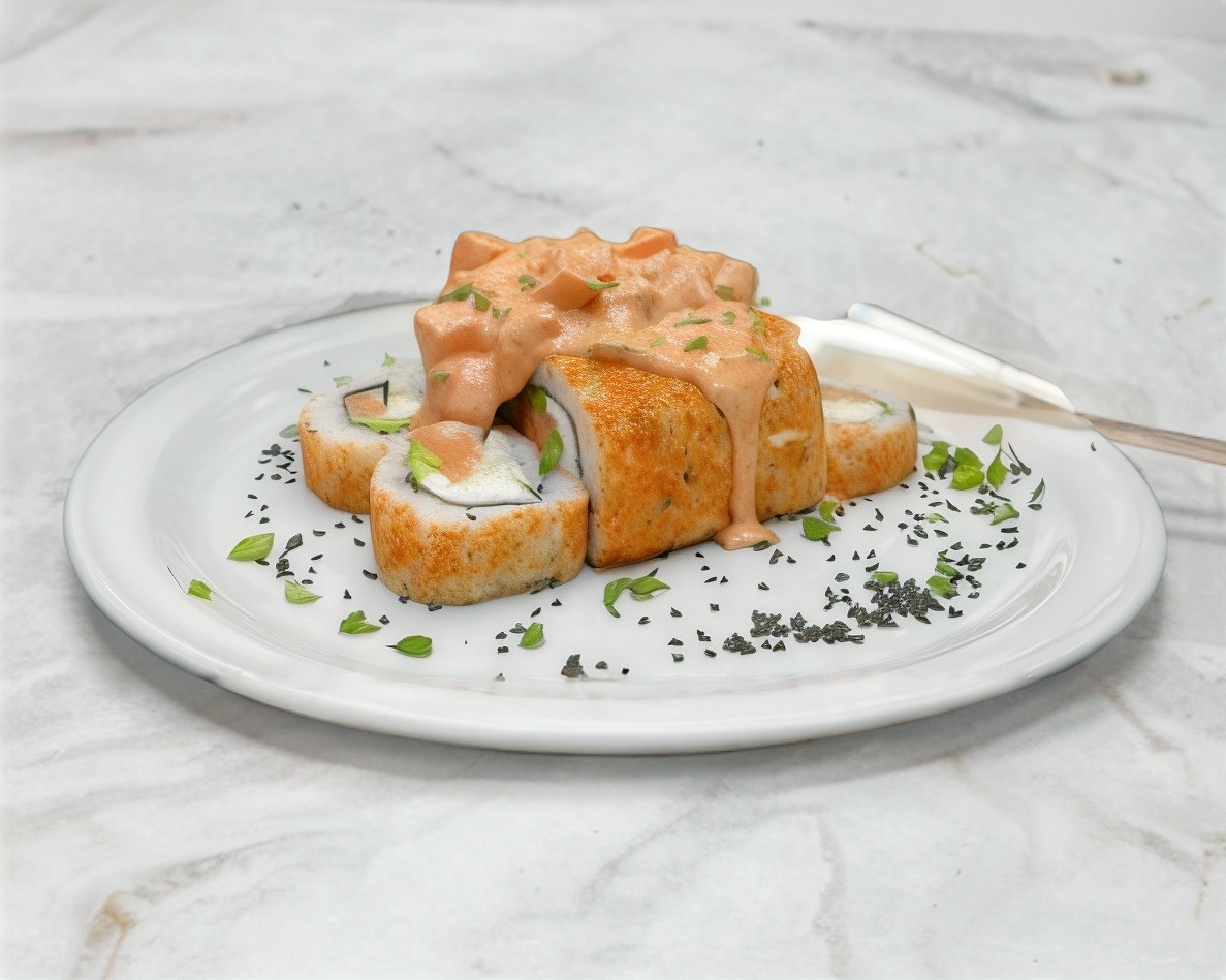 Sushi tempura, se recomienda con res o pollo bañado en salsa dulce con un toque de picante