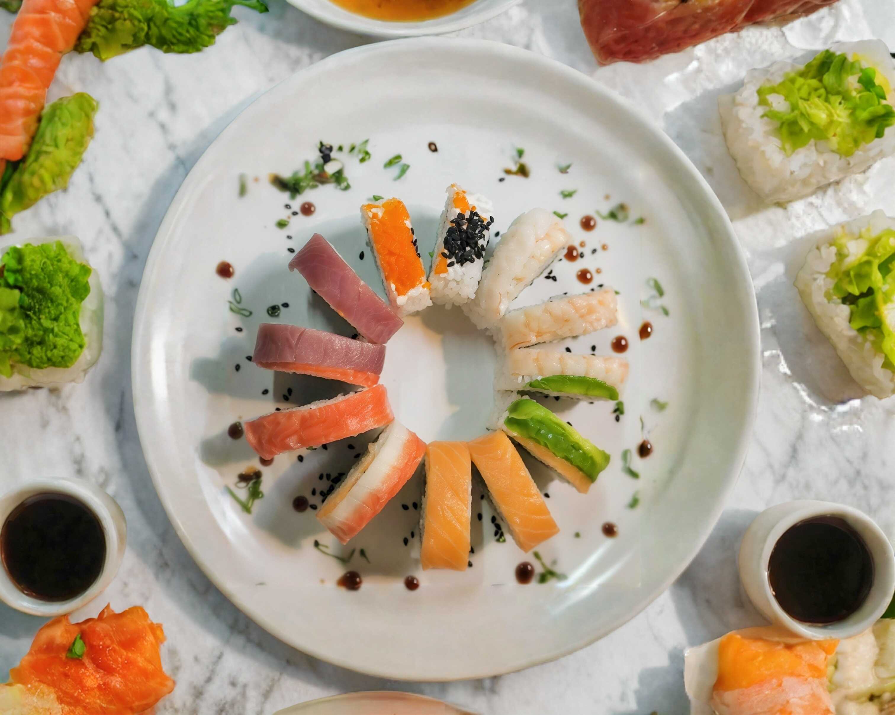 Camarón, pulpo, salmón, atún, surimi
