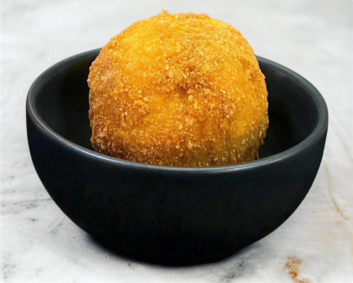 Bola de arroz empanizada por dentro aguacate pepino y philadelphia