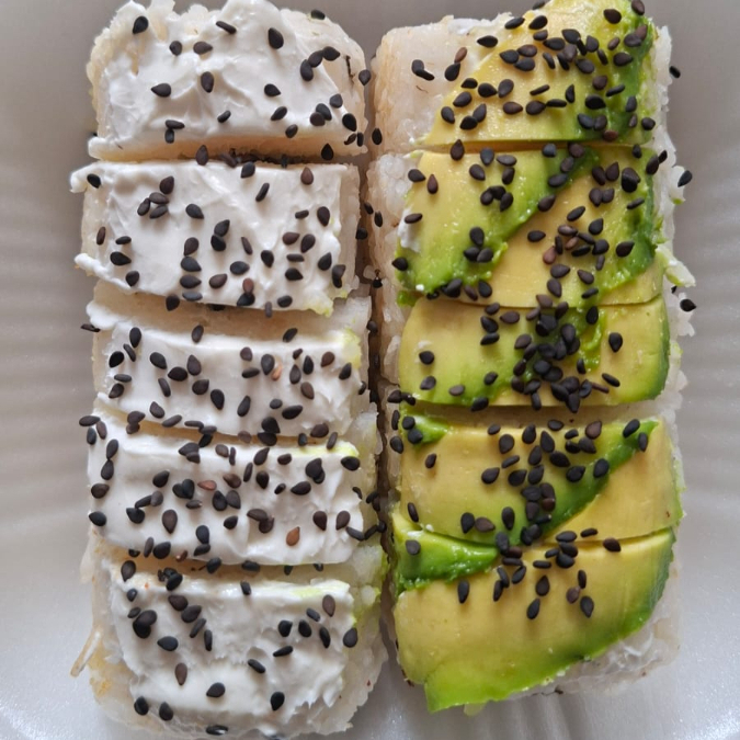 10 piezas. Rollo de arroz cubierto de aguacate; por dentro relleno de queso Philadelphia, pepino y proteína a elegir.