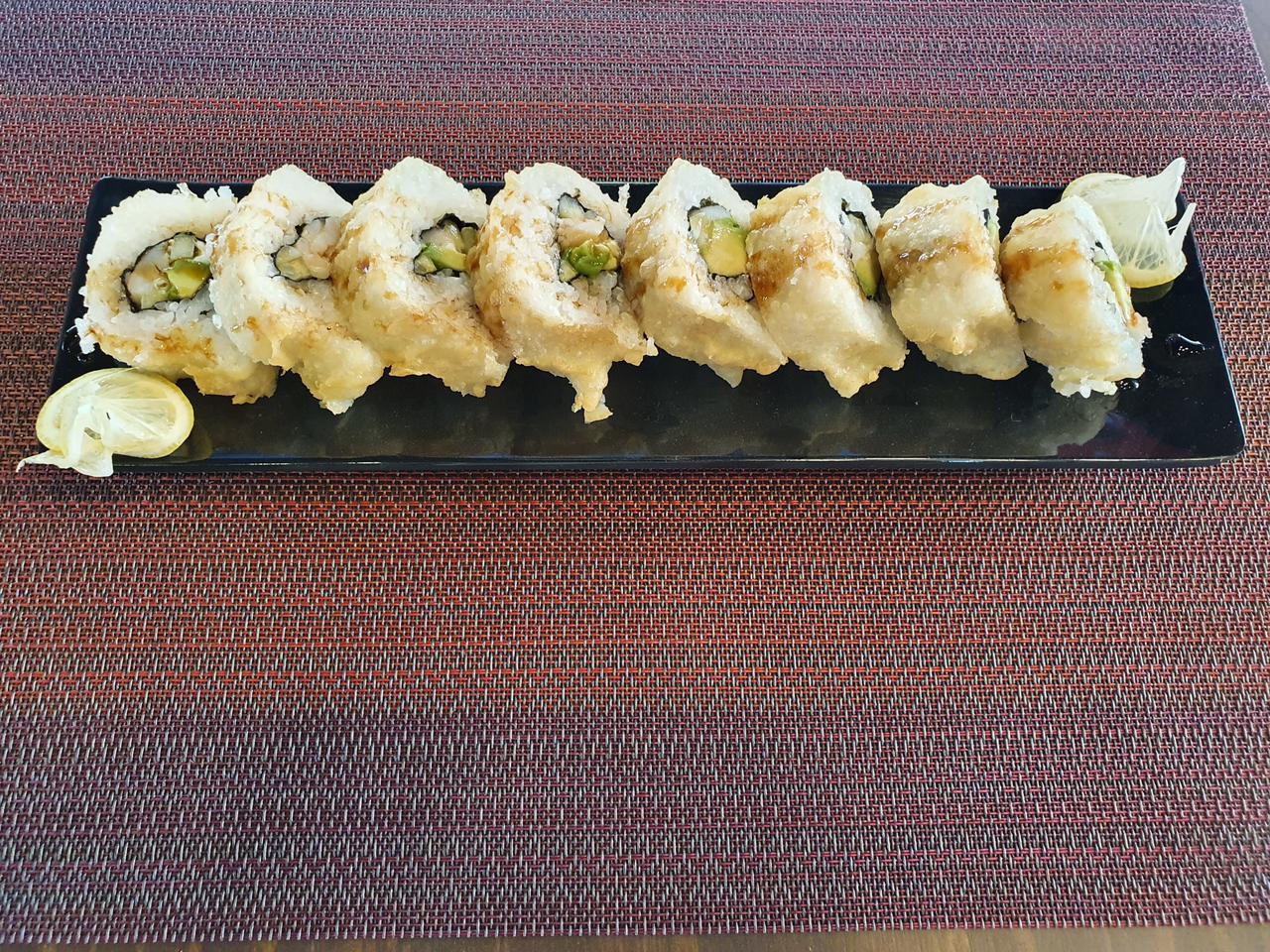 Philadelphia, aguacate, surimi, empanizado con carne a elegir.