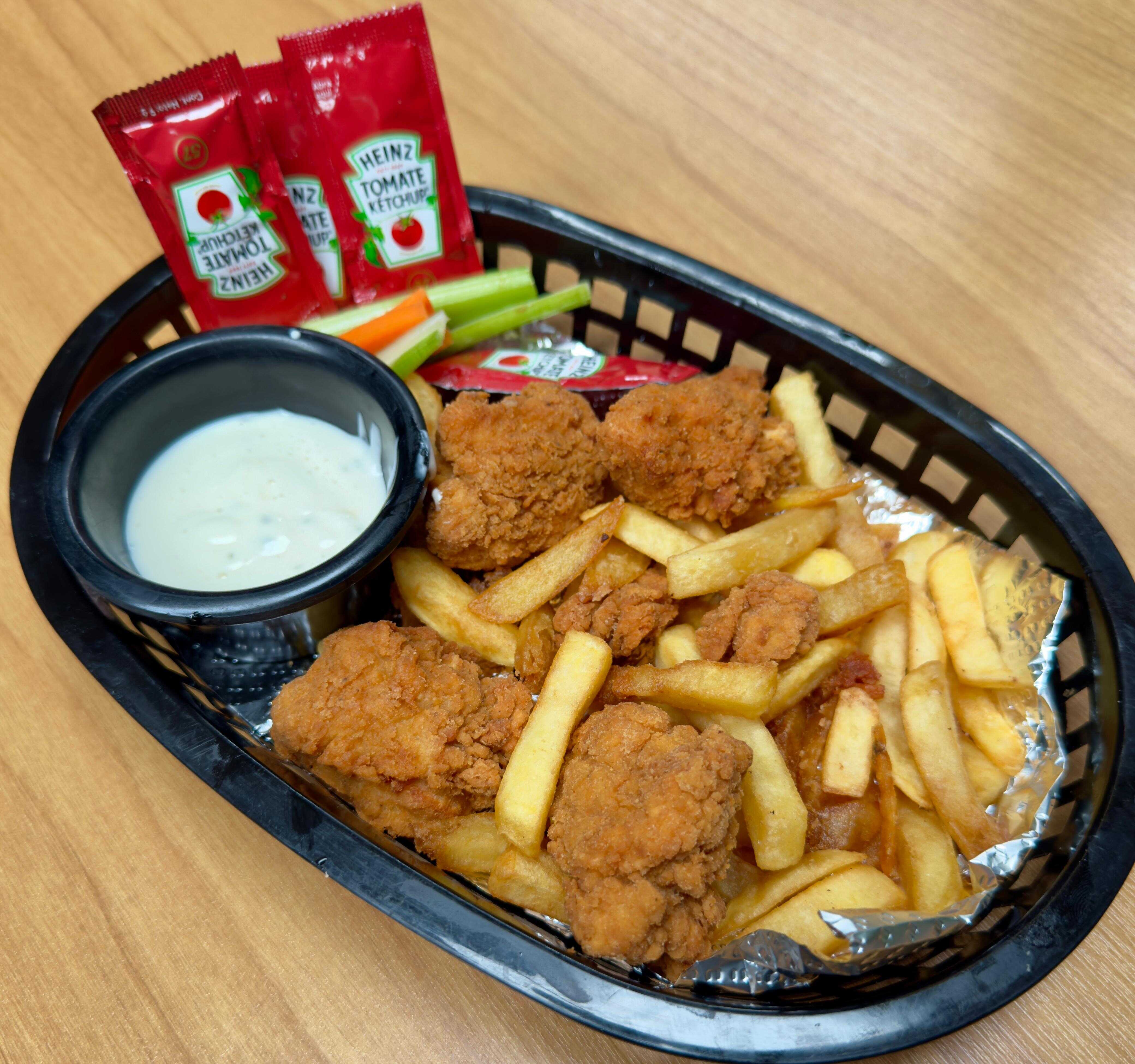 150 g De boneless naturales, 100 g de papas a la francesa, aderezos.