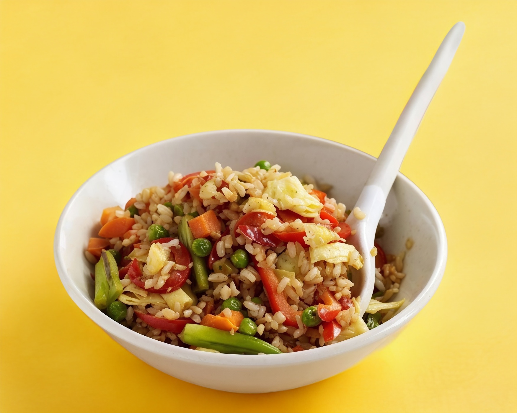 Arroz frito con calabaza y zanahoria. Proteina a elegir.