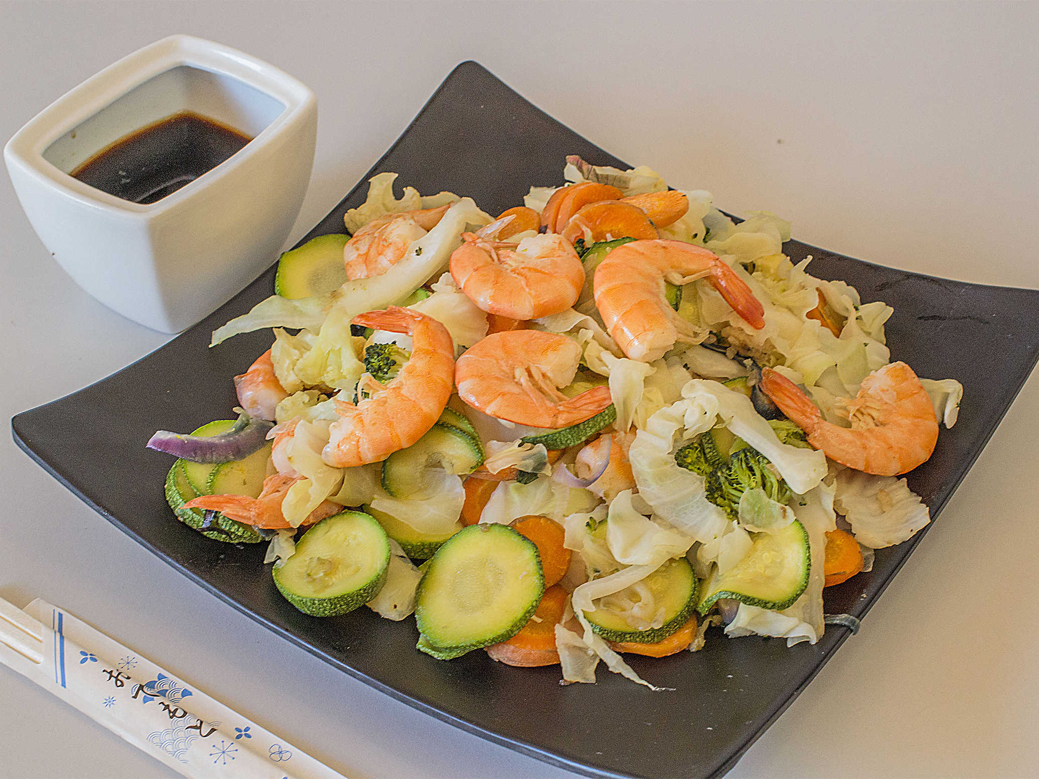 Arroz blanco, con una ensalada de surimi