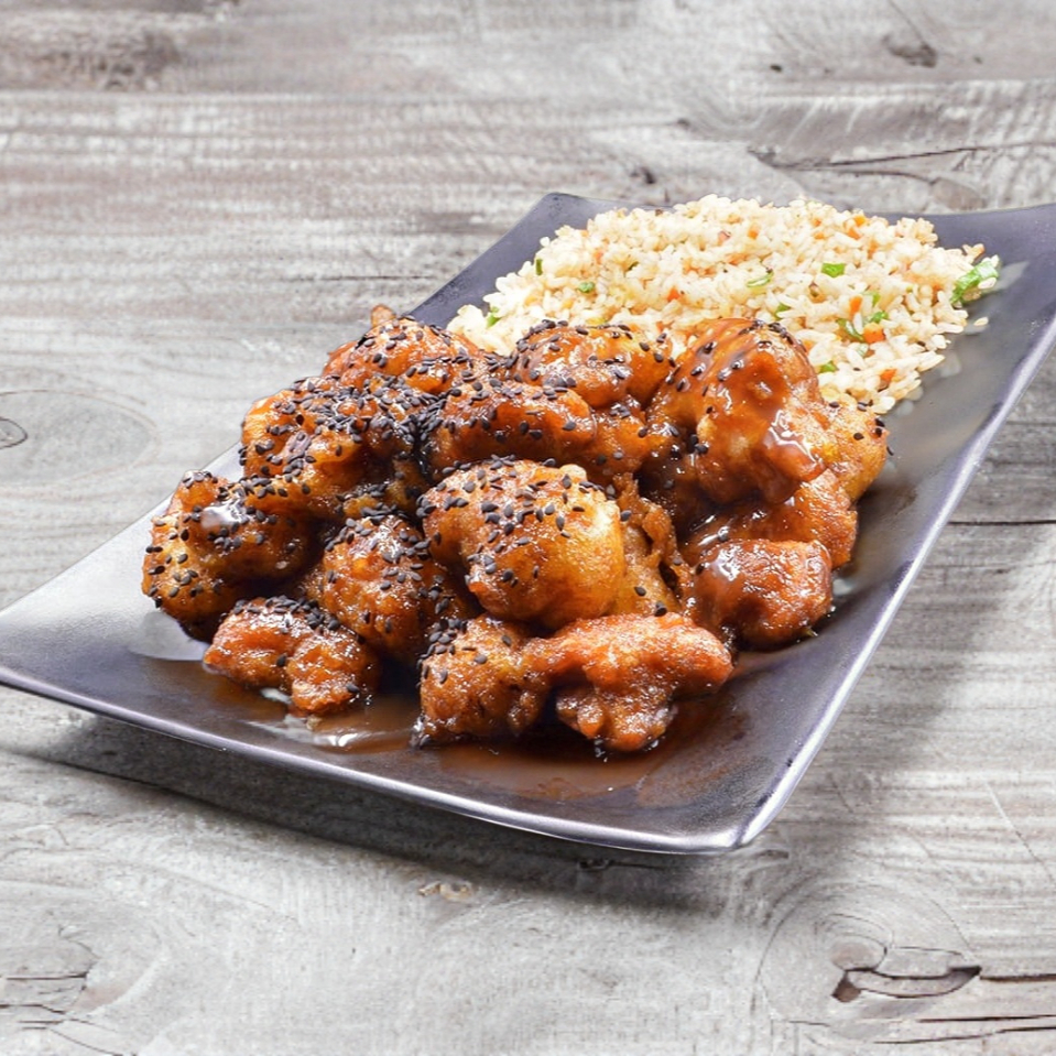 10 pzas con arroz frito y salsa a la diabla.