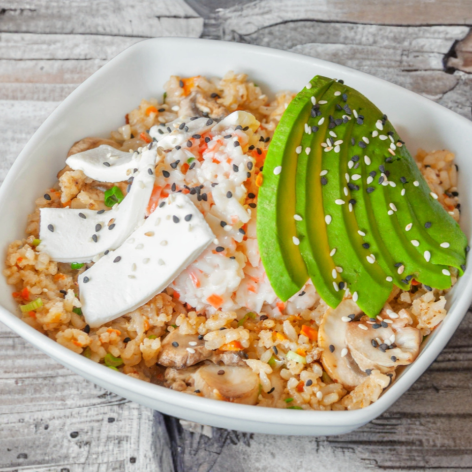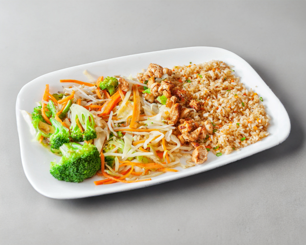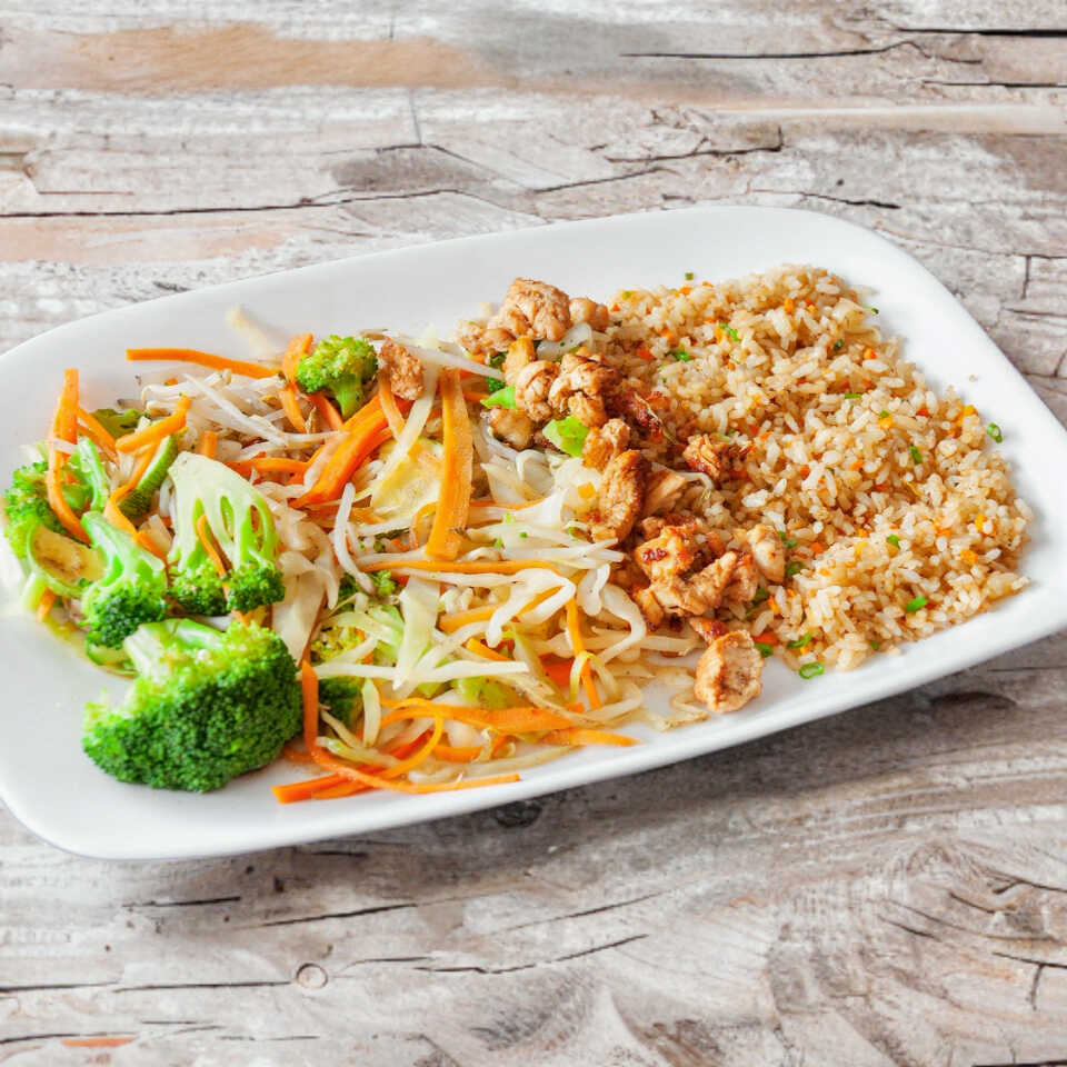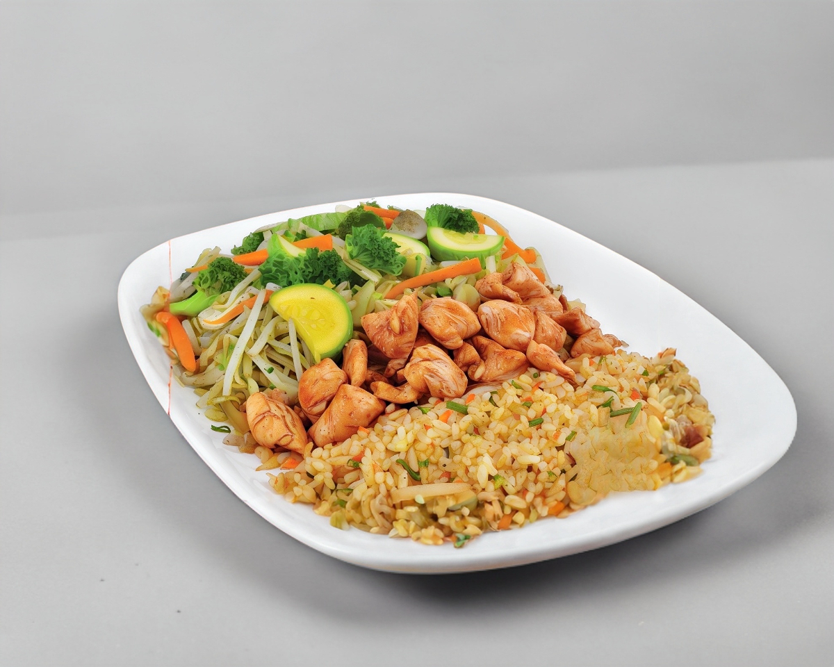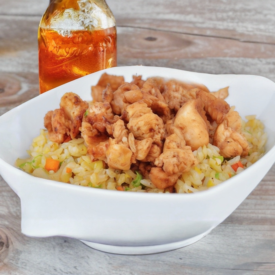 Yakimeshi con Pollo 300gr de arroz frito y 90gr de pollo a la plancha